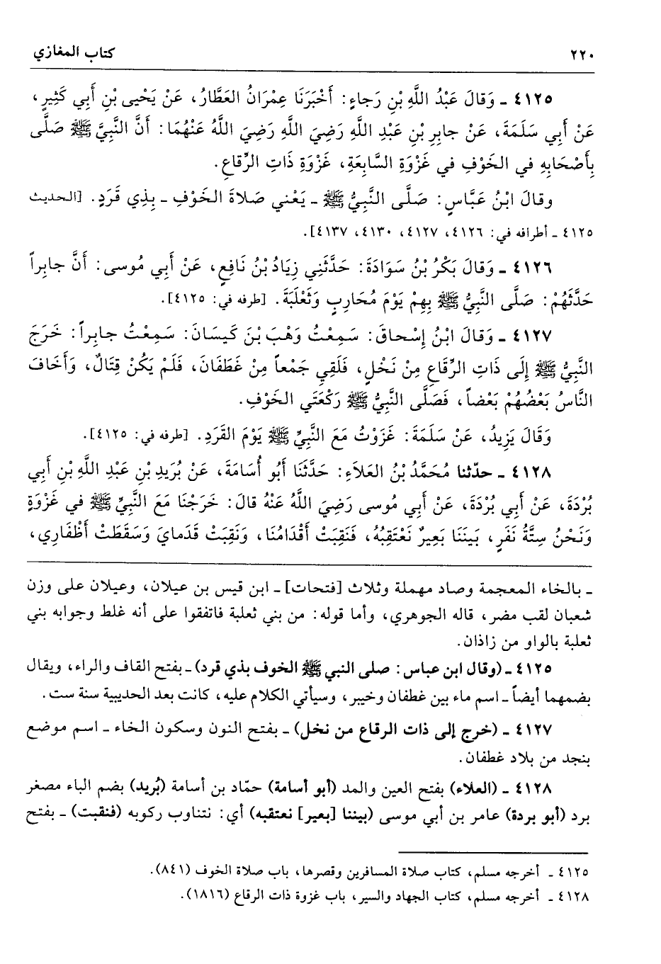 4126 - وَقَالَ بَكْرُ بْنُ سَوَادَةَ حَدَّثَنِى زِيَادُ بْنُ نَافِعٍ عَنْ أَبِى مُوسَى أَنَّ جَابِرًا حَدَّثَهُمْ صَلَّى النَّبِىُّ - صلى الله عليه وسلم - بِهِمْ يَوْمَ مُحَارِبٍ وَثَعْلَبَةَ. طرفه 4125