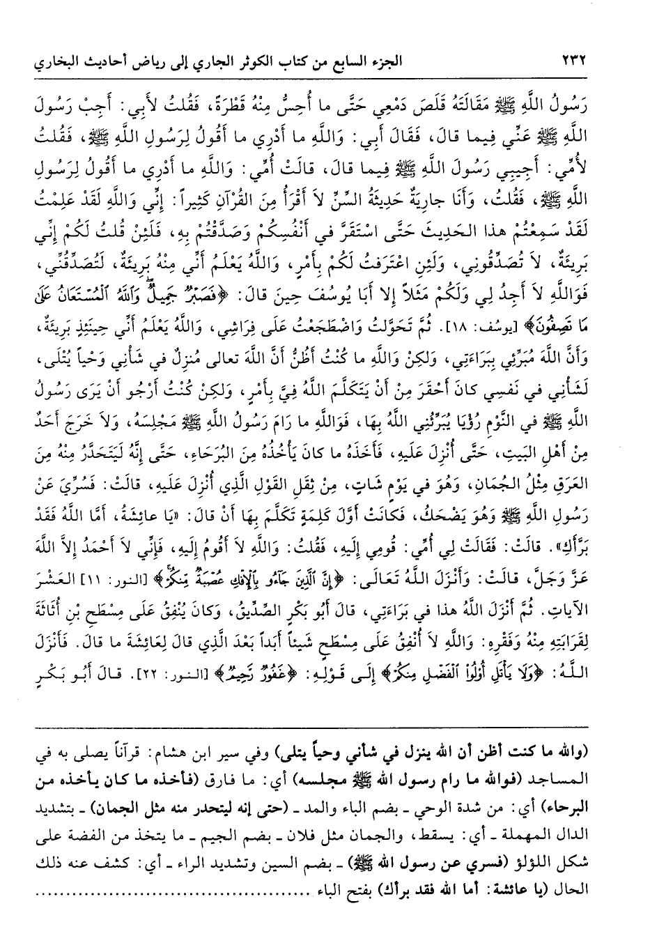 كتاب الكوثر الجاري إلى رياض أحاديث البخاري (اسم الجزء: 7)
