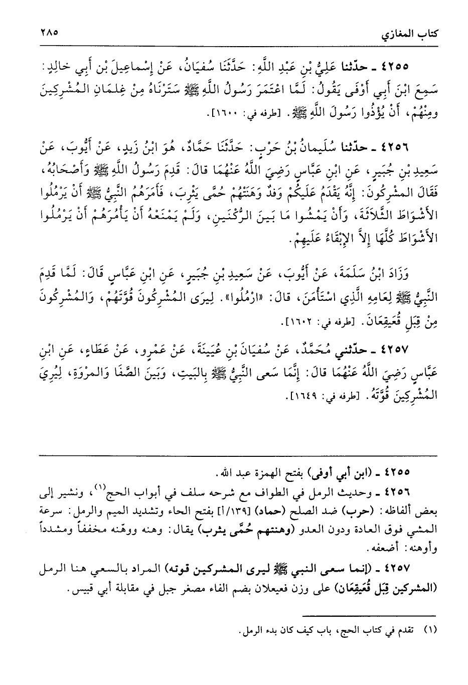 4257 - (إنما سعى النبي - صلى الله عليه وسلم - ليرى المشركين قوته) المراد بالسعي هنا الرمل (المشركين قِبَل قُعَيقِعَان) على وزن فعيعلان بضم الفاء مصغر جبل في مقابلة أبي قبيس.