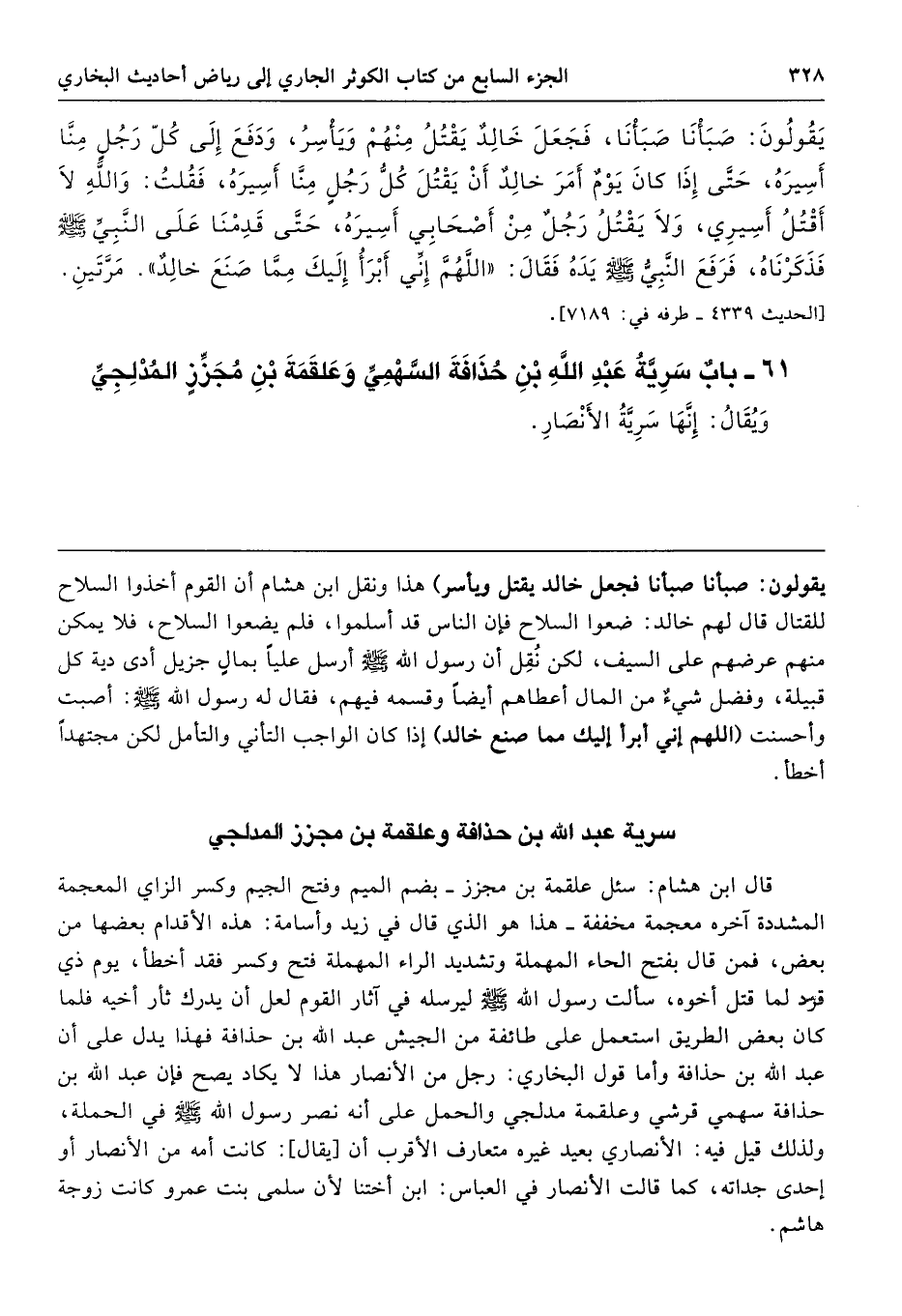 61 - باب سَرِيَّةُ عَبْدِ اللَّهِ بْنِ حُذَافَةَ السَّهْمِىِّ وَعَلْقَمَةَ بْنِ مُجَزِّزٍ الْمُدْلِجِىِّ