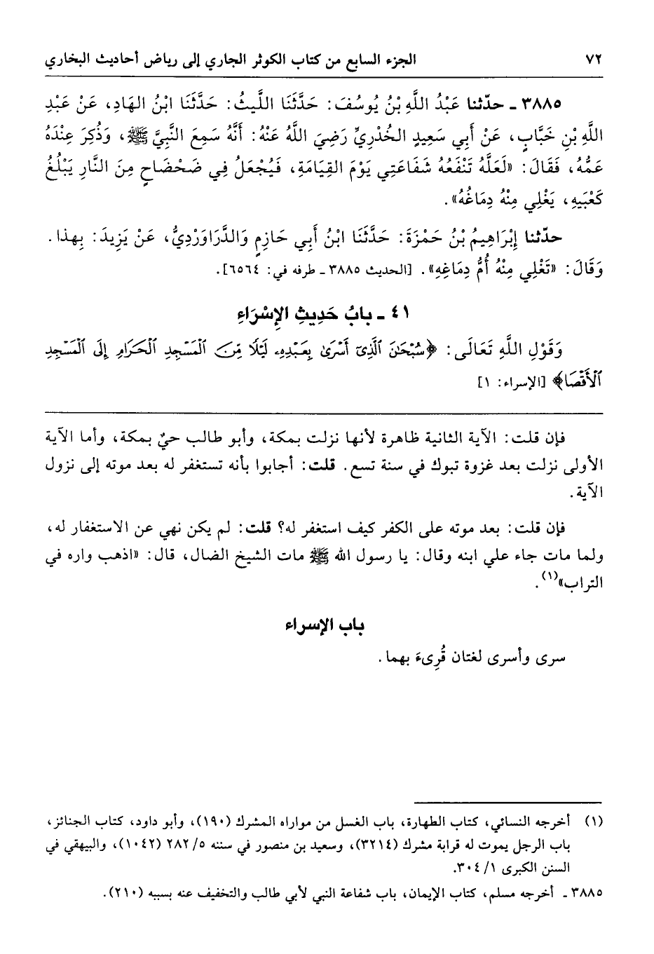 وَقَوْلِ اللَّهِ تَعَالَى (سُبْحَانَ الَّذِى أَسْرَى بِعَبْدِهِ لَيْلاً مِنَ الْمَسْجِدِ الْحَرَامِ إِلَى الْمَسْجِدِ الأَقْصَى).