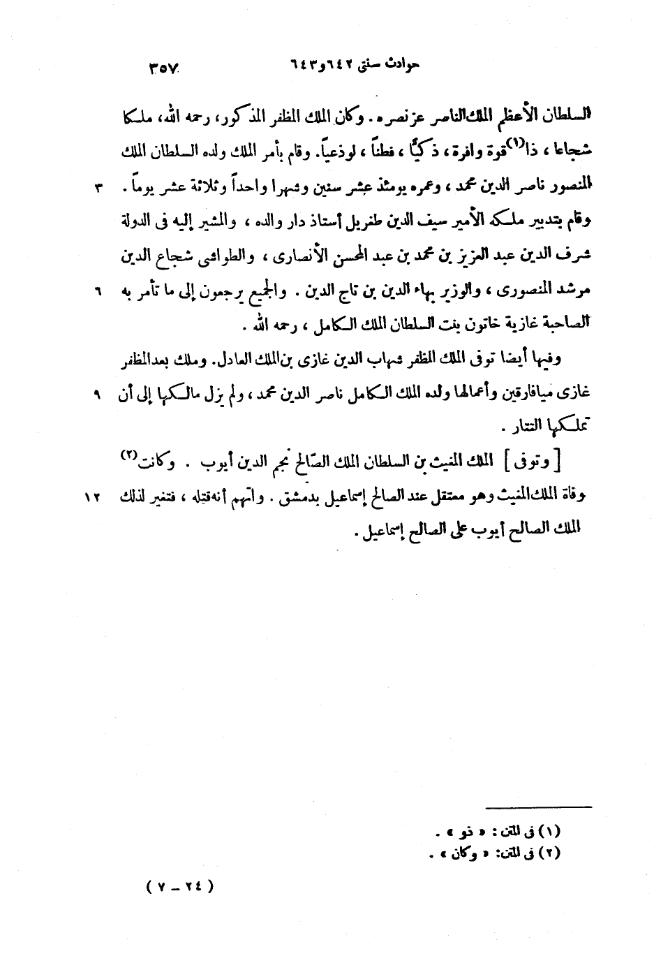 [وتوفى] الملك المغيث بن السلطان الملك الصّالح نجم الدين أيوب. وكانت وفاة الملك المغيث وهو معتقل عند الصالح إسماعيل بدمشق. واتهم أنه قتله، فتغير لذلك الملك الصالح أيوب على الصالح إسماعيل.