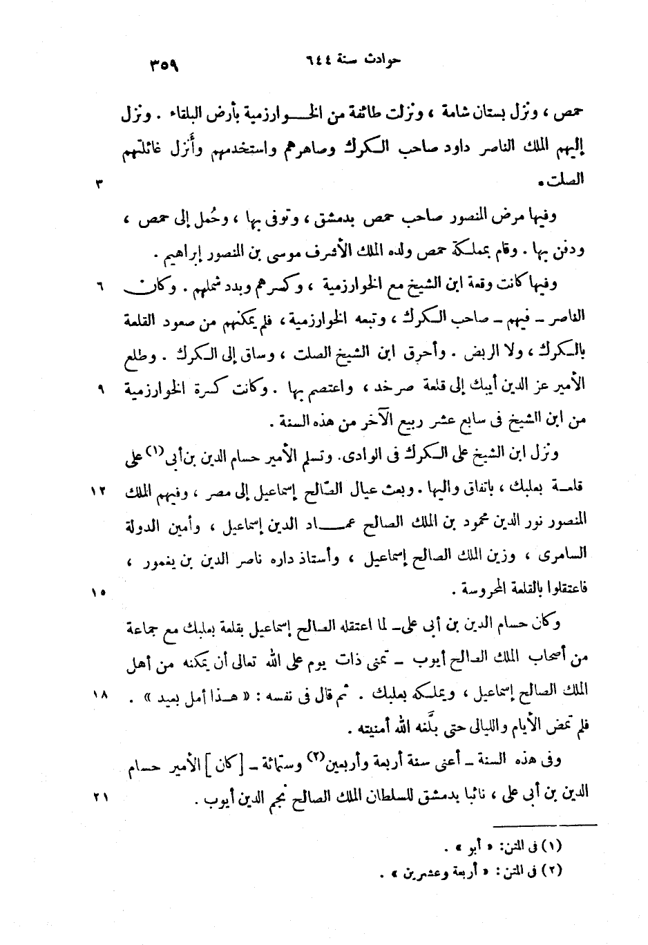 وفى هذه السنة-أعنى سنة أربعة وأربعين وستمائة-[كان] الأمير حسام الدين بن أبى على، نائبا بدمشق للسلطان الملك الصالح نجم الدين أيوب.