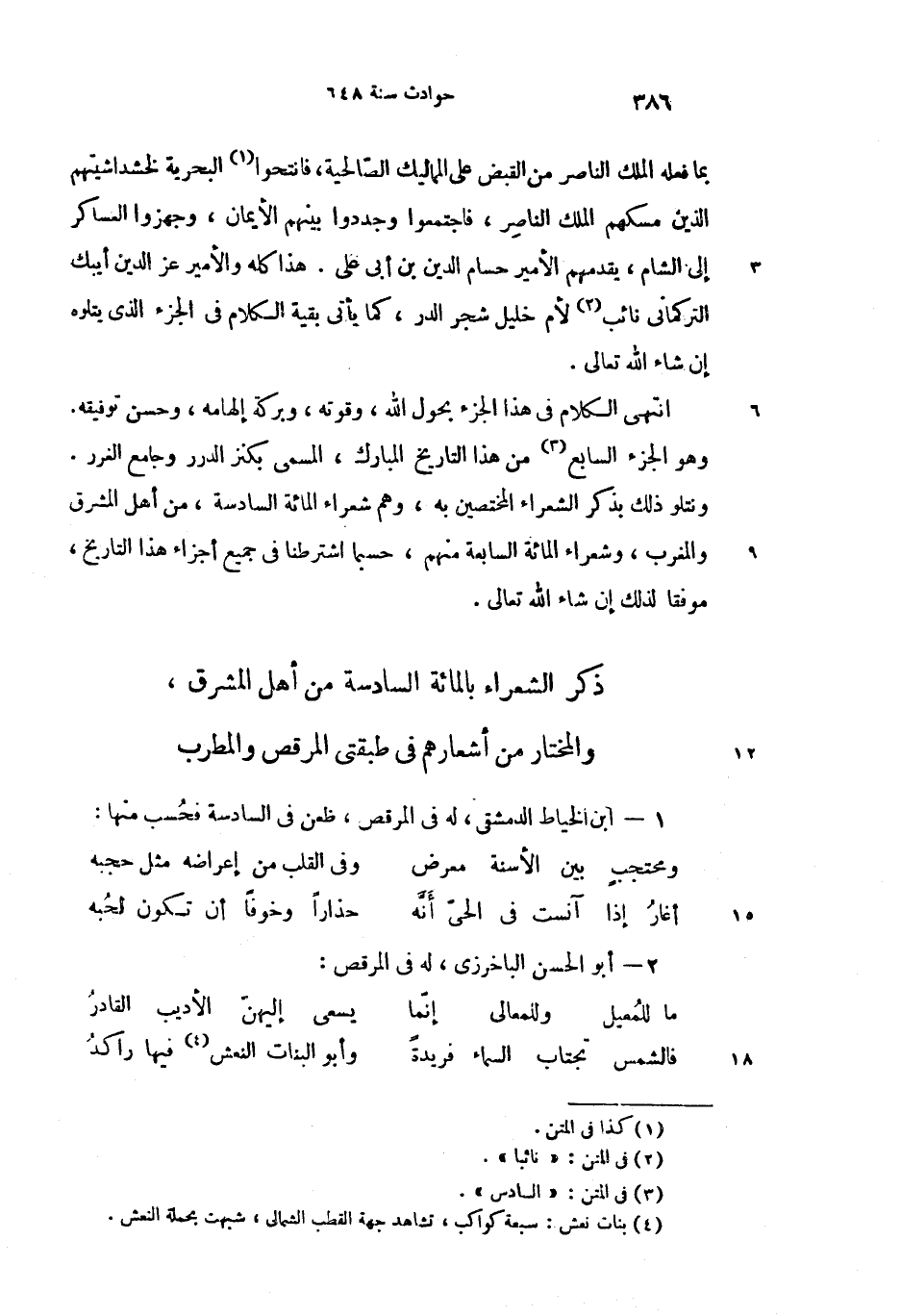 1 - ابن الخياط الدمشقى، له فى المرقص، ظعن فى السادسة فحسب منها: