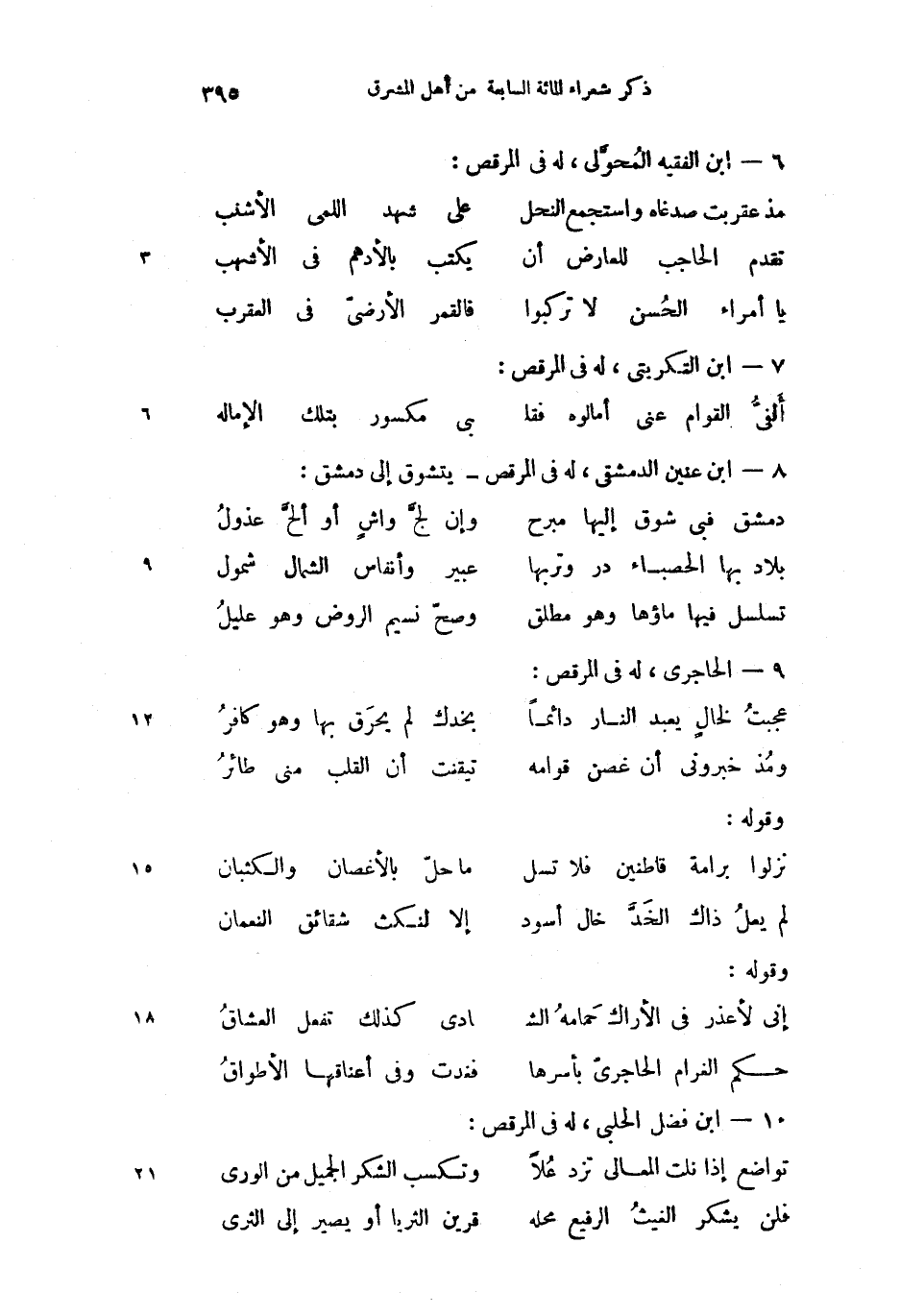 8 - ابن عنين الدمشقى، له فى المرقص-يتشوق إلى دمشق: