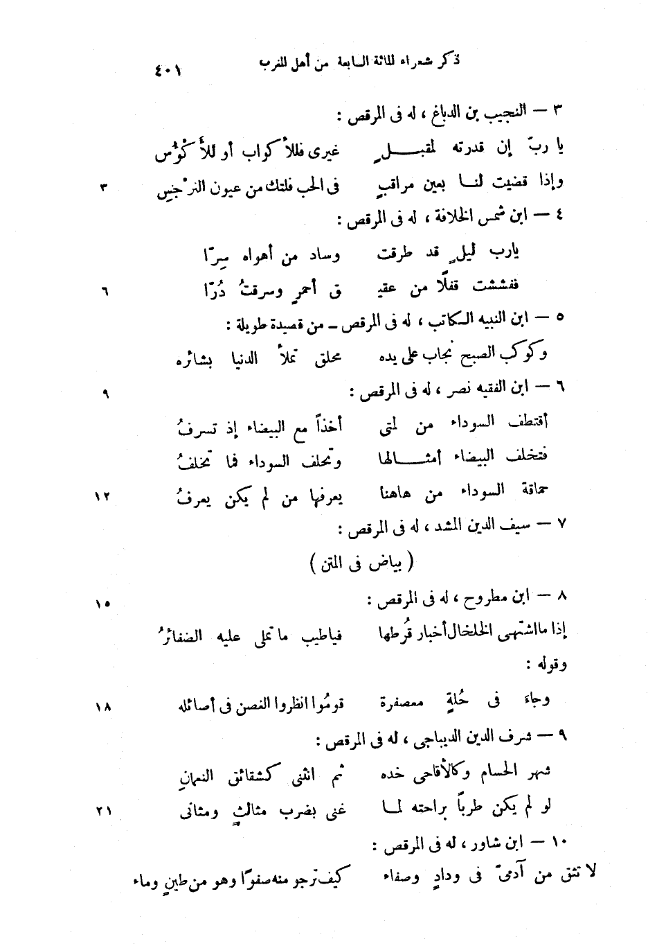 5 - ابن النبيه الكاتب، له فى المرقص-من قصيدة طويلة: