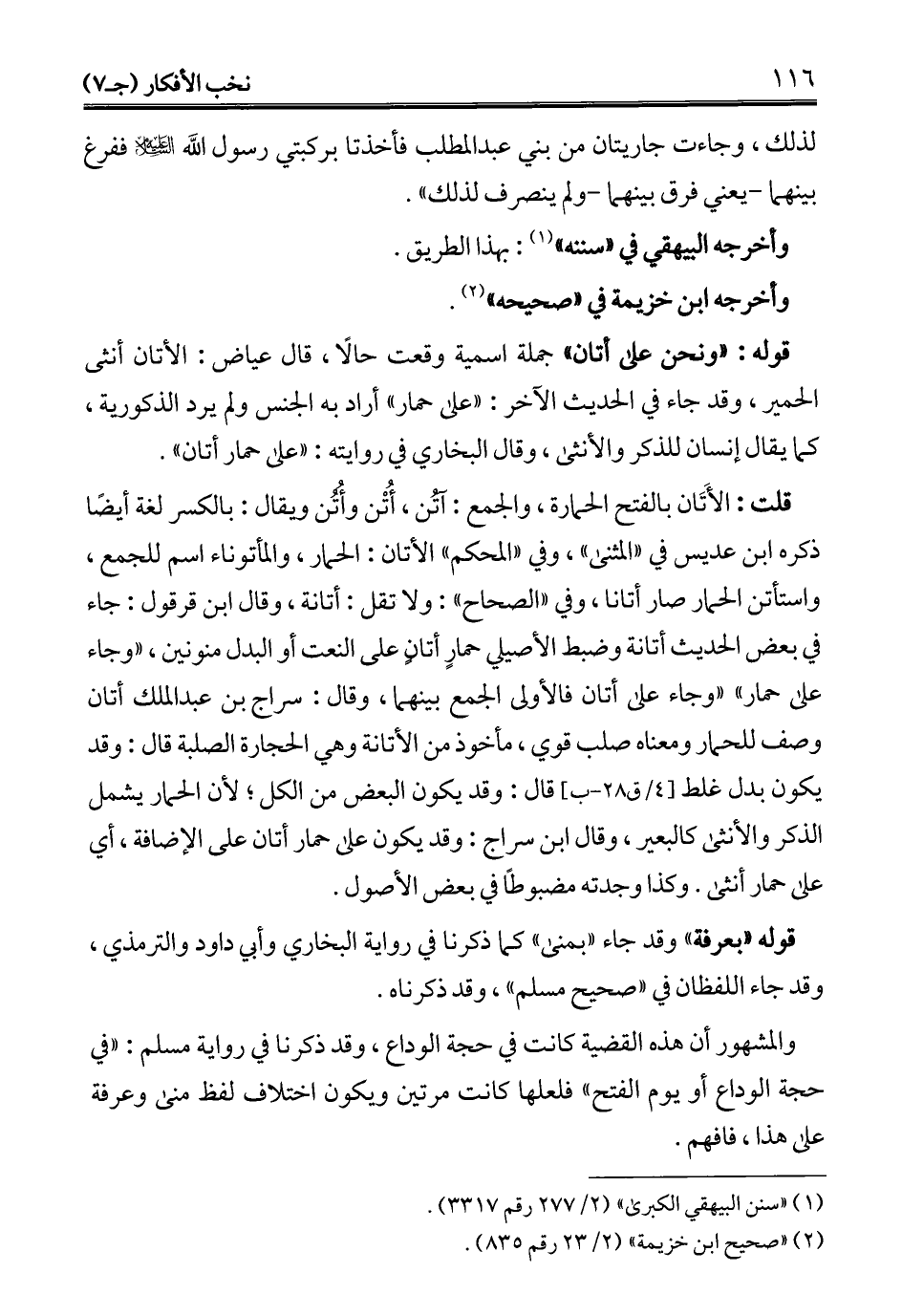 والمشهور أن هذه القضية كانت في حجة الوداع، وقد ذكرنا في رواية مسلم: "في حجة الوداع أو يوم الفتح" فلعلها كانت مرتين ويكون اختلاف لفظ مني وعرفة على هذا، فافهم.