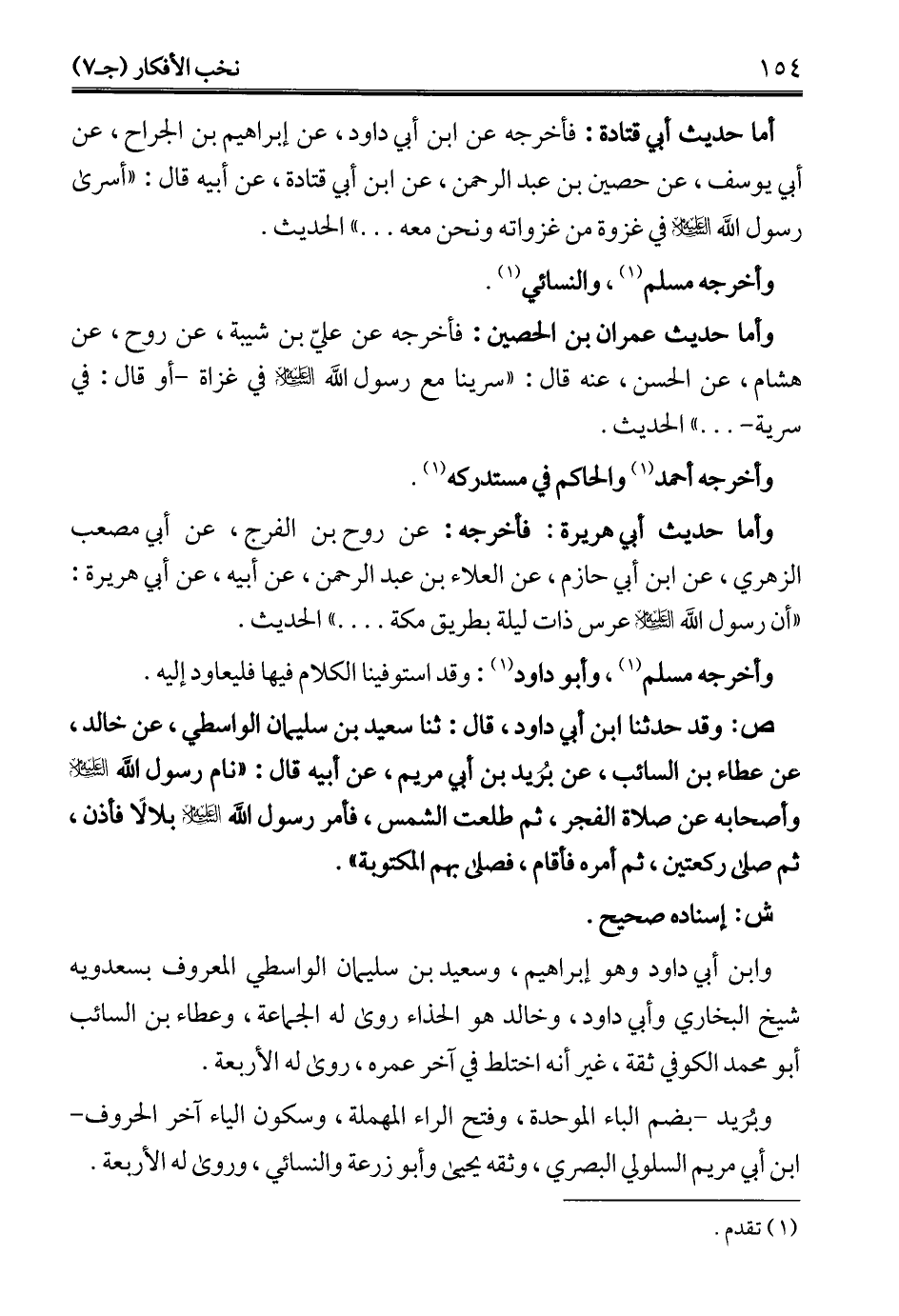 وأما حديث عمران بن الحصين: فأخرجه عن عليّ بن شيبة، عن روح، عن هشام، عن الحسن، عنه قال: "سرينا مع رسول الله - عليه السلام - في غزاة -أو قال: في سرية- ... " الحديث.
