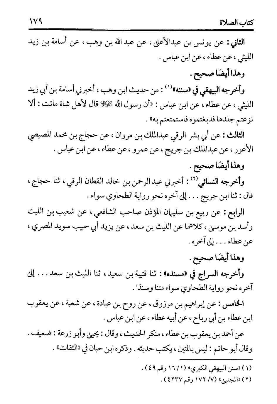 الثاني: عن يونس بن عبد الأعلى، عن عبد الله بن وهب، عن أسامة بن زيد الليثي، عن عطاء، عن ابن عباس.