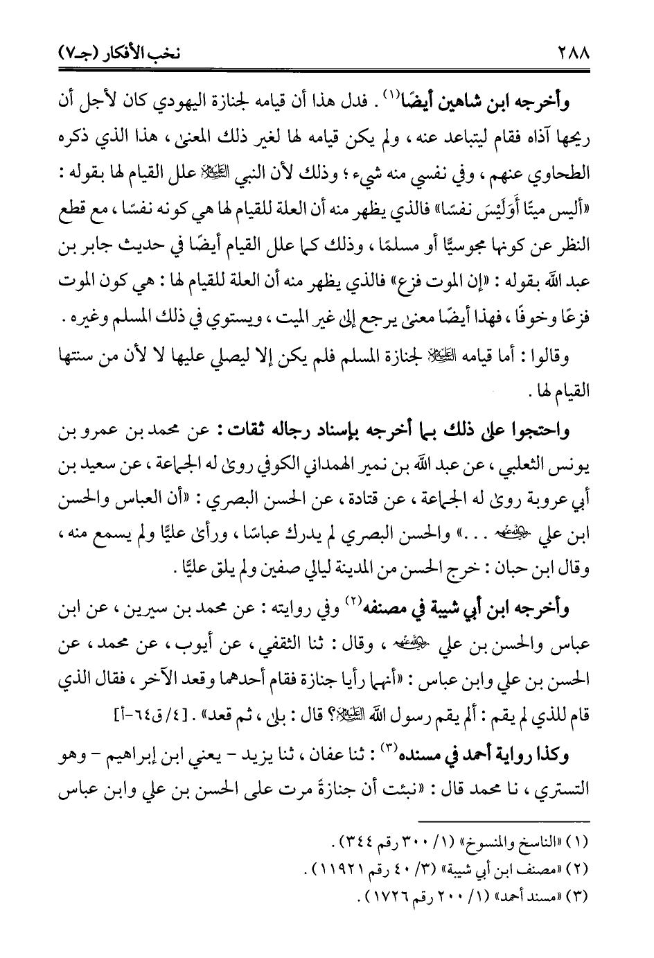 وأخرجه ابن أبي شيبة في مصنفه (¬2) وفي روايته: عن محمد بن سيرين، عن ابن عباس والحسن بن علي - رضي الله عنهم -، وقال: ثنا الثقفي، عن أيوب، عن محمد، عن الحسن بن علي وابن عباس: "أنهما رأيا جنازة فقام أحدهما وقعد الآخر، فقال الذي قام للذي لم يقم: ألم يقم رسول الله - عليه السلام -؟ قال: بلى، ثم قعد".