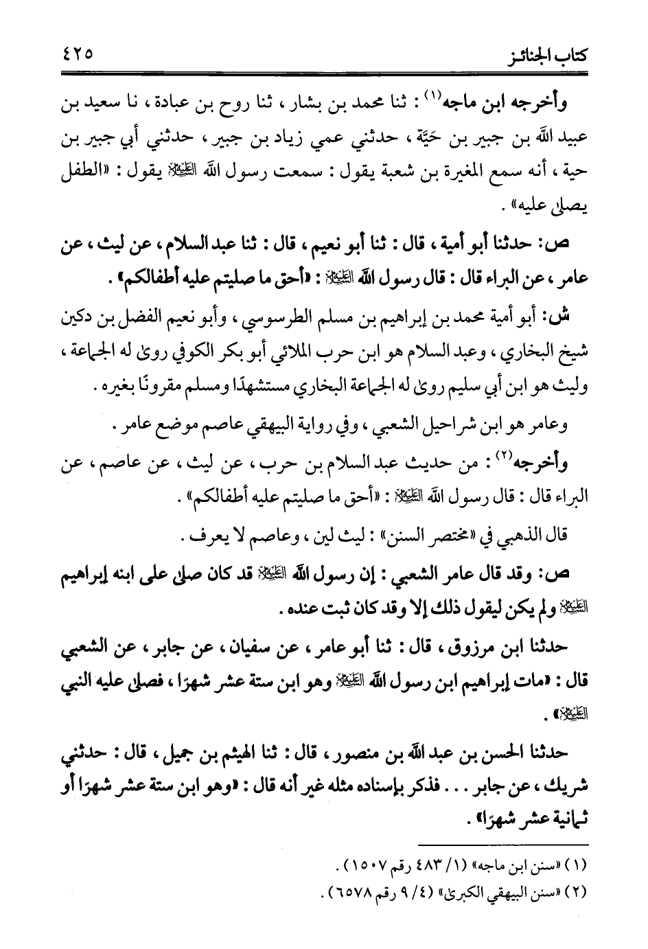 حدثنا ابن مرزوق، قال: ثنا أبو عامر، عن سفيان، عن جابر، عن الشعبي قال: "مات إبراهيم ابن رسول الله - عليه السلام - وهو ابن ستة عشر شهرًا، فصلى عليه النبي - عليه السلام -".