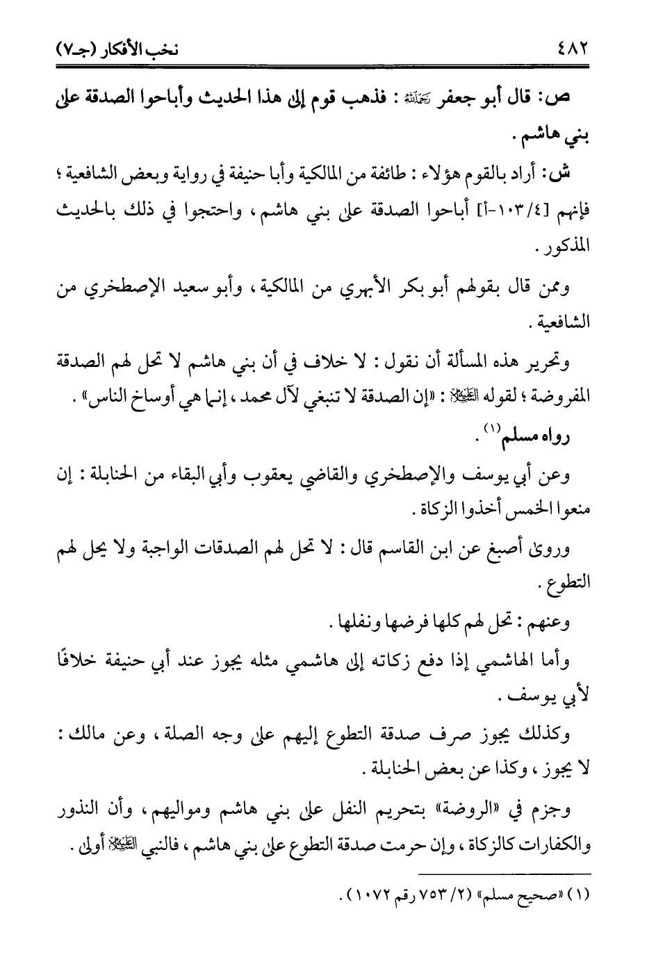 ش: أراد بالقوم هؤلاء: طائفة من المالكية وأبا حنيفة في رواية وبعض الشافعية؛ فإنهم أباحوا الصدقة على بني هاشم، واحتجوا في ذلك بالحديث المذكور.