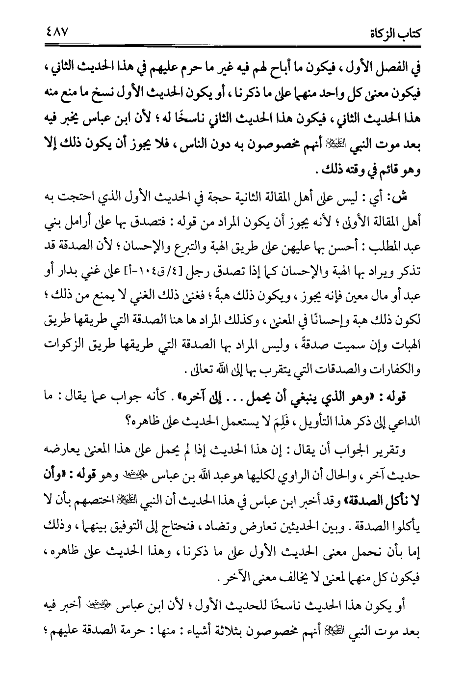 أو يكون هذا الحديث ناسخًا للحديث الأول؛ لأن ابن عباس - رضي الله عنهما - أخبر فيه بعد موت النبي - عليه السلام - أنهم مخصوصون بثلاثة أشياء: منها: حرمة الصدقة عليهم؛