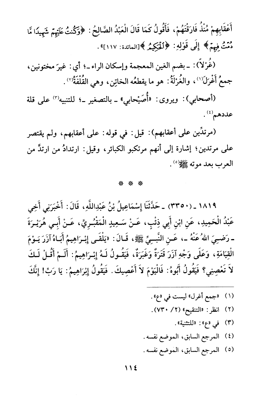 أَعْقَابِهِمْ مُنْذُ فَارَقْتَهُمْ، فَأَقُولُ كَمَا قَالَ الْعَبْدُ الصَّالِحُ: {وَكُنْتُ عَلَيْهِمْ شَهِيدًا مَا دُمْتُ فِيهِمْ} إِلَى قَوْلهِ: {الْحَكِيمُ} [المائدة: 117] ".