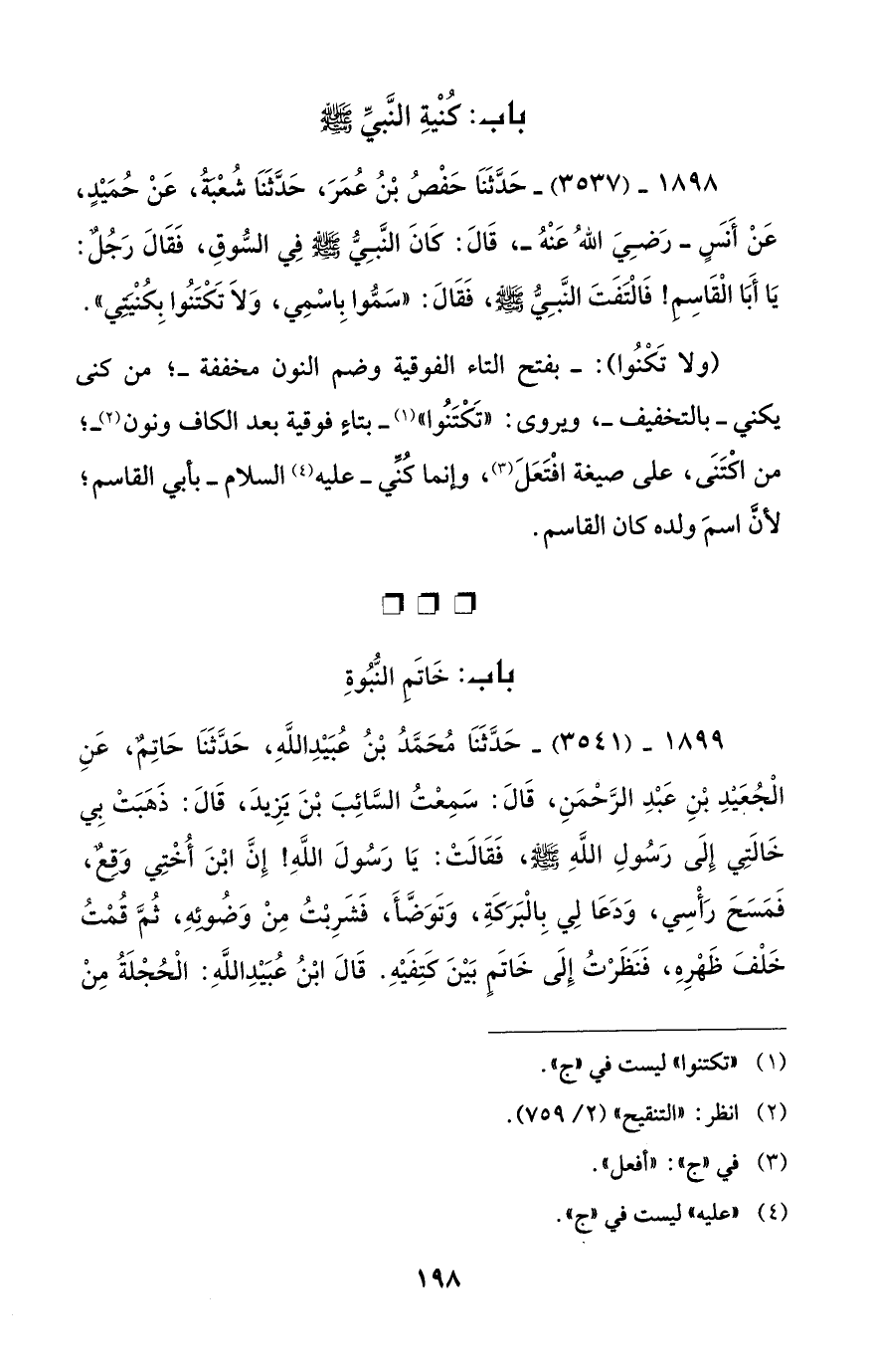 باب: كُنْيةِ النَّبيِّ - صلى الله عليه وسلم -