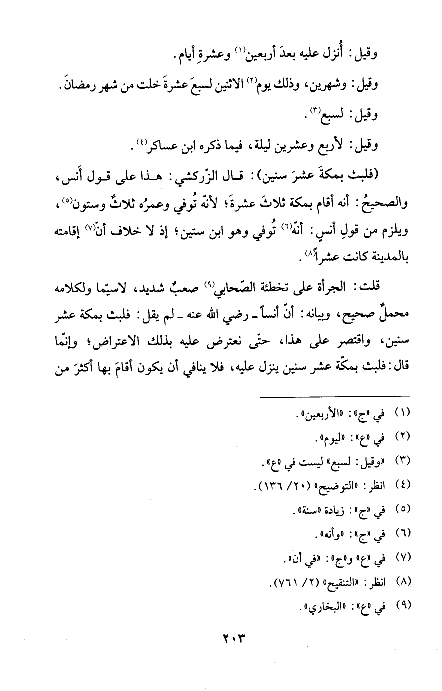 قلت: الجرأة على تخطئة الصّحابي (¬9) صعبٌ شديد، لاسيّما ولكلامه محملٌ صحيح، وييانه: أنّ أنسًا - رضي الله عنه - لم يقل: فلبث بمكة عشر سنين، واقتصر على هذا، حتّى نعترض عليه بذلك الاعتراض؛ وإنّما قال: فلبث بمكة عشر سنين ينزل عليه، فلا ينافي أن يكون أقامَ بها أكثرَ من