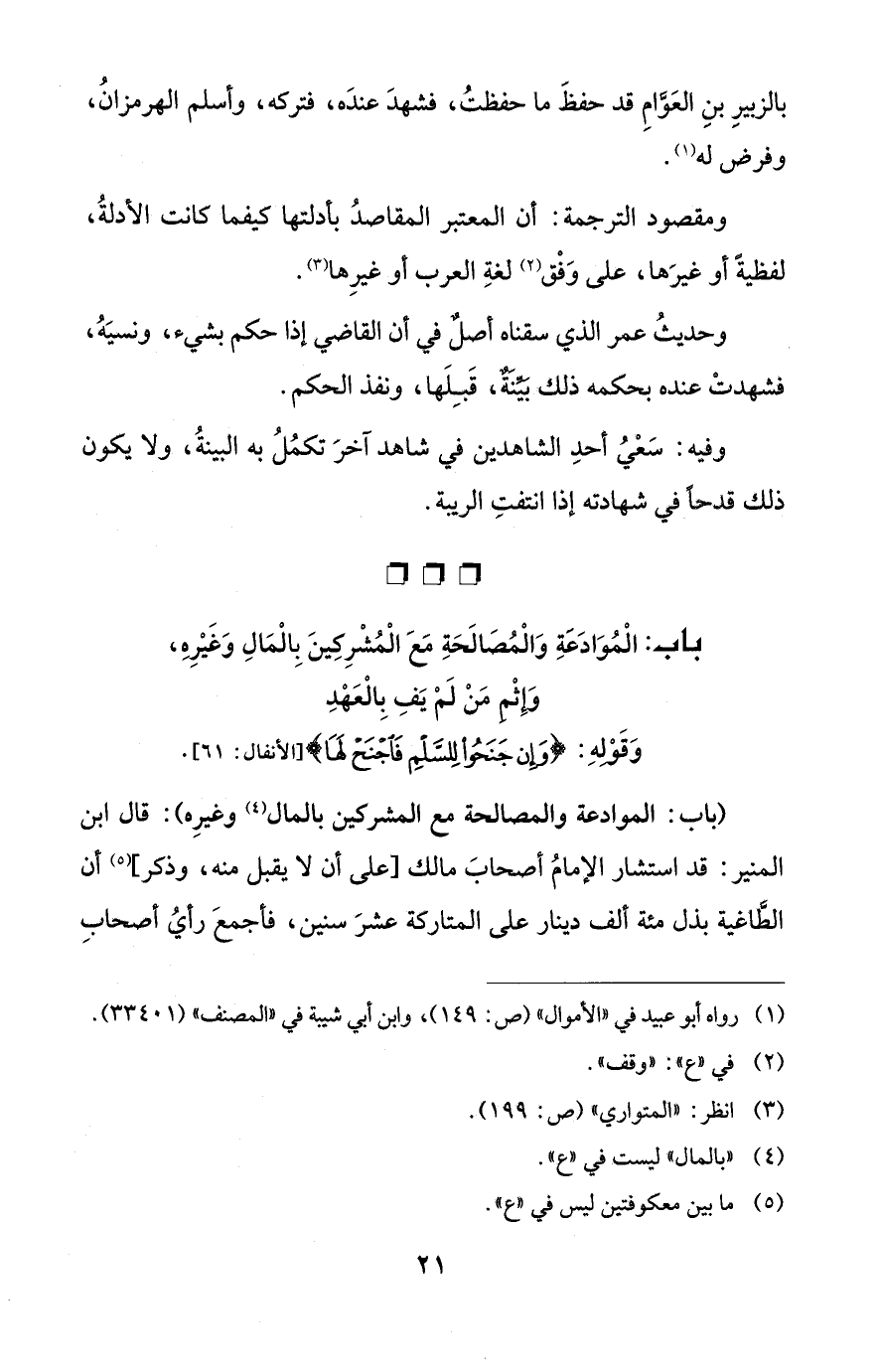 باب: الْمُوَادَعَةِ وَالْمُصَالَحَةِ مَعَ الْمُشْرِكِينَ بِالْمَالِ وَغَيْرِهِ، وَإِثْمِ مَنْ لَمْ يَفِ بِالْعَهْدِ