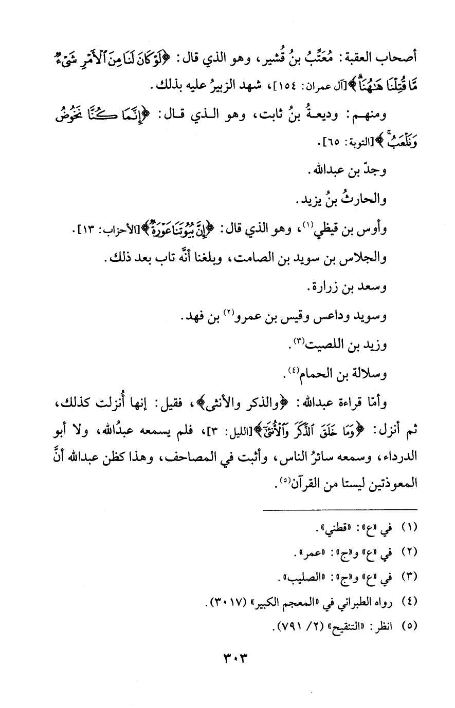 أصحاب العقبة: مُعَتِّبُ بنُ قُشير، وهو الذي قال: {لَوْ كَانَ لَنَا مِنَ الْأَمْرِ شَيْءٌ مَا قُتِلْنَا هَاهُنَا} [آل عمران: 154]، شهد الزبيرُ عليه بذلك.