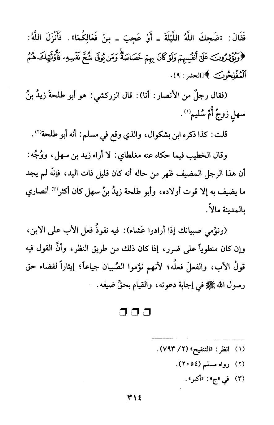 وقال الخطيب فيما حكاه عنه مغلطاي: لا أراه زيد بن سهل، ووُجِّه: أن هذا الرجل المضيف ظهر من حاله أنه كان قليل ذات اليد، فإنّه لم يجد ما يضيف به إلا قوت أولاده، وأبو طلحة زيدُ بنُ سهل كان أكثر (¬3) أنصاري بالمدينة مالًا.