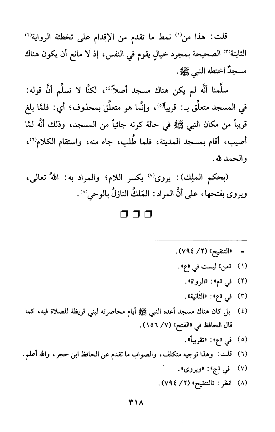 قلت: هذا من (¬1) نمط ما تقدم من الإقدام على تخطئة الرواية (¬2) الثابتة (¬3) الصحيحة بمجرد خيالٍ يقوم في النفس، إذ لا مانع أن يكون هناك مسجدٌ اختطه النبي - صلى الله عليه وسلم -.