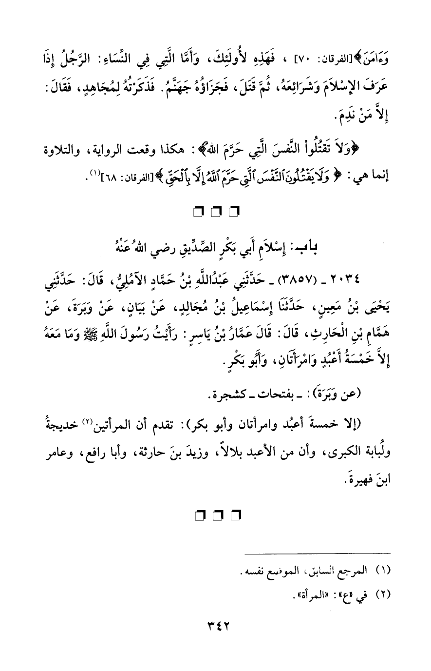 باب: إِسْلَامِ أَبي بَكْرٍ الصِّدِّيقِ - رضي الله عنه -