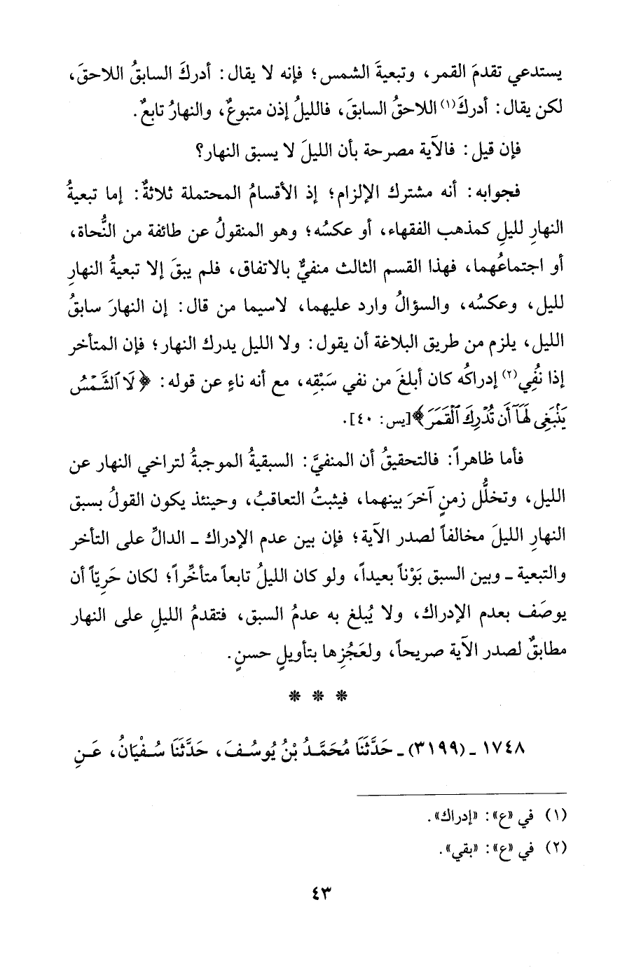1748 - (3199) - حَدَّثَنَا مُحَمَّدُ بْنُ يُوسُفَ، حَدَّثَنَا سُفْيَانُ، عَنِ