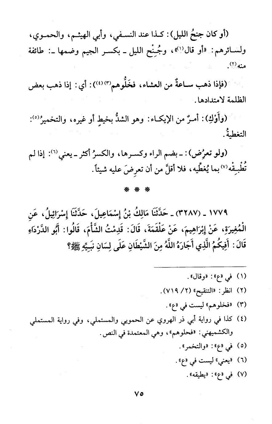 1779 - (3287) - حَدَّثَنَا مَالِكُ بْنُ إِسْمَاعِيلَ، حَدَّثَنَا إِسْرَائِيلُ، عَنِ الْمُغِيرَةِ، عَنْ إِبْرَاهِيمَ، عَنْ عَلْقَمَةَ، قَالَ: قَدِمْتُ الشَّأْمَ، قَالُوا: أَبُو الدَّرْدَاءِ قَالَ: أَفِيكُمُ الَّذِي أَجَارَهُ اللهُ مِنَ الشَّيْطَانِ عَلَى لِسَانِ نَبِيِّهِ - صلى الله عليه وسلم -؟