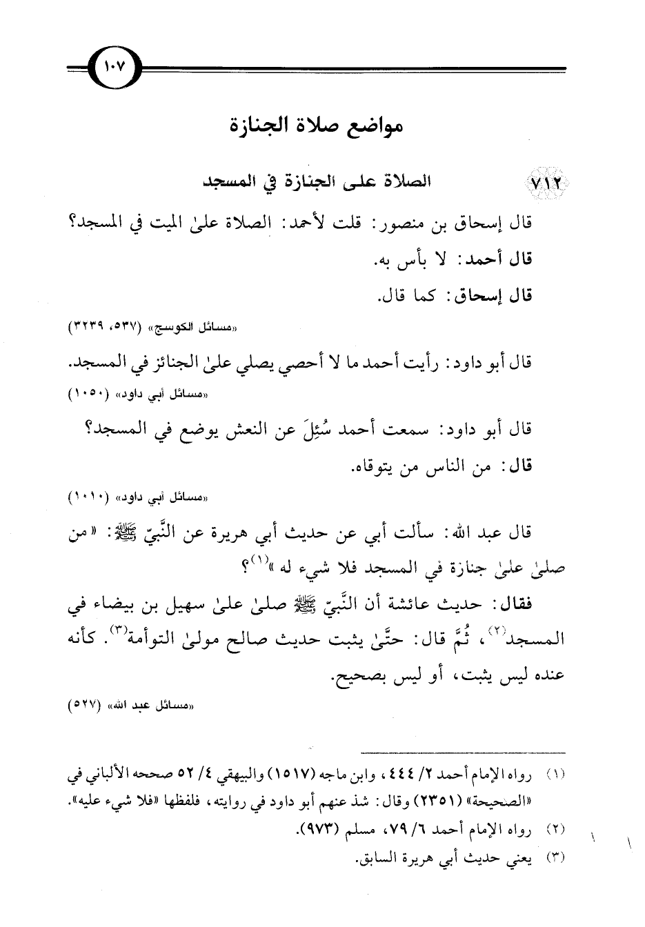 قال إسحاق بن منصور: قلت لأحمد: الصلاة على الميت في المسجد؟