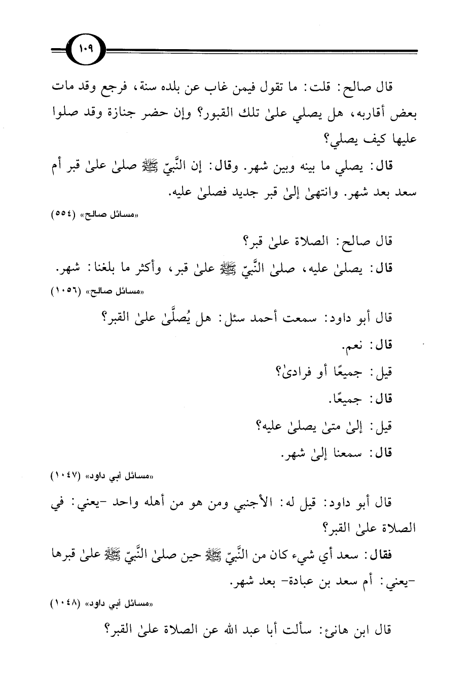 قال أبو داود: سمعت أحمد سئل: هل يُصلَّى على القبر؟