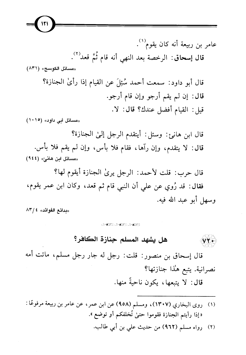 قال أبو داود: سمعت أحمد سُئِلَ عن القيام إذا رأى الجنازة؟