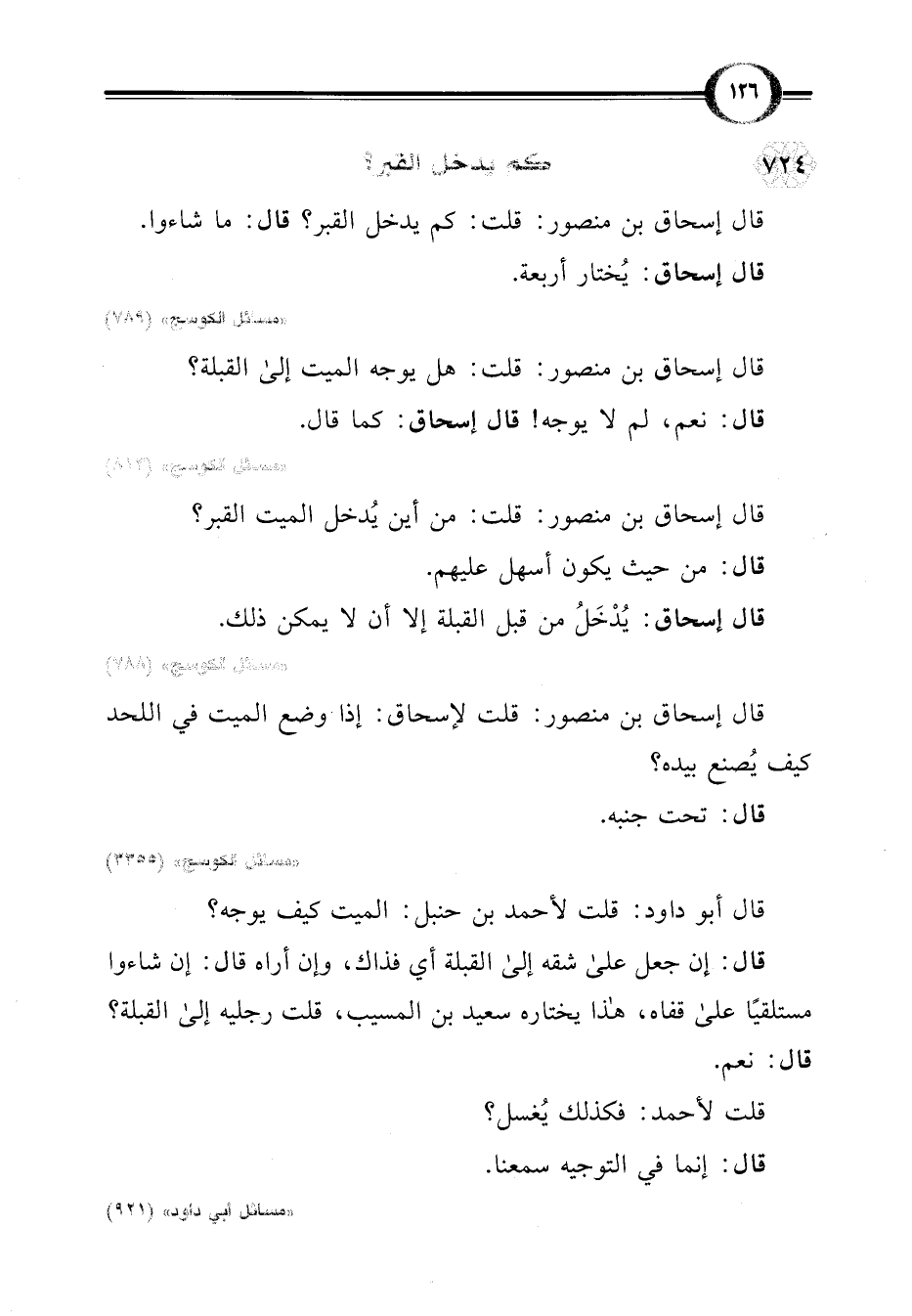 قال إسحاق بن منصور: قلت: من أين يُدخل الميت القبر؟
