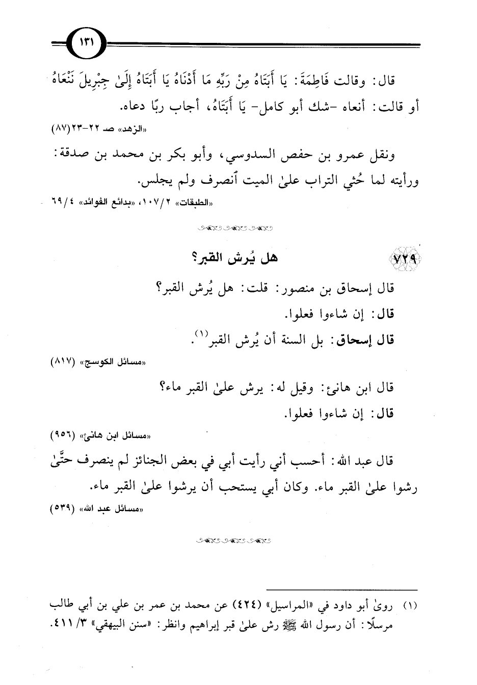 قال إسحاق بن منصور: قلت: هل يُرش القبر؟