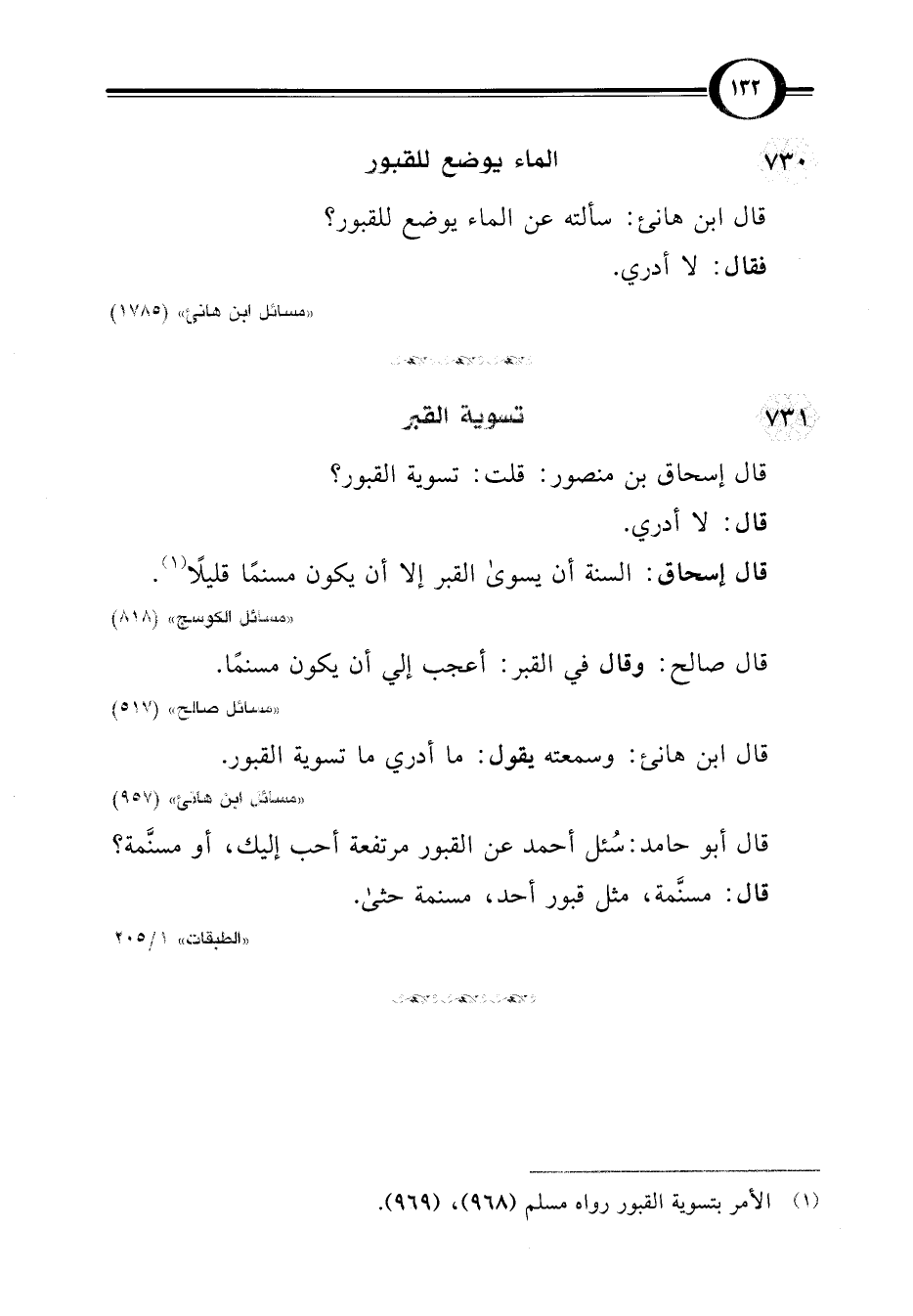 قال ابن هانئ: وسمعته يقول: ما أدري ما تسوية القبور.