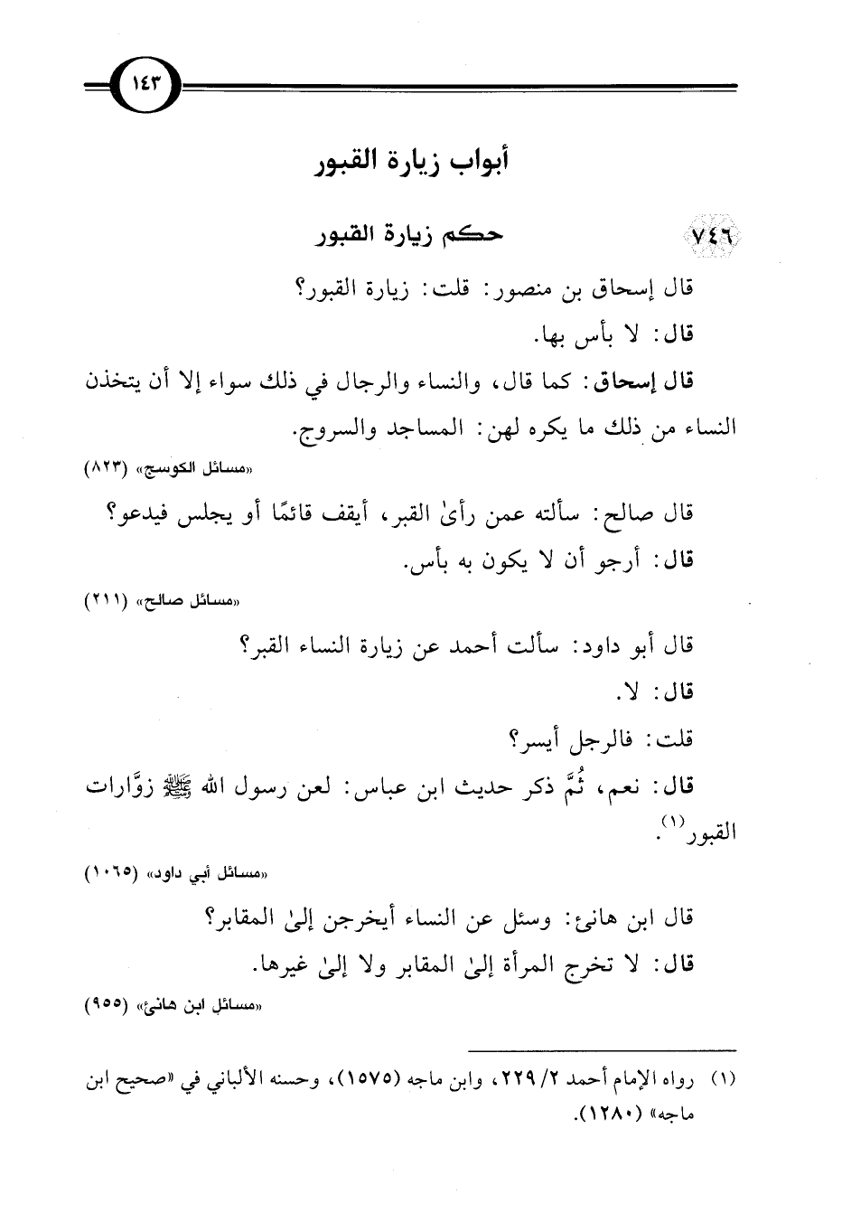 قال إسحاق بن منصور: قلت: زيارة القبور؟