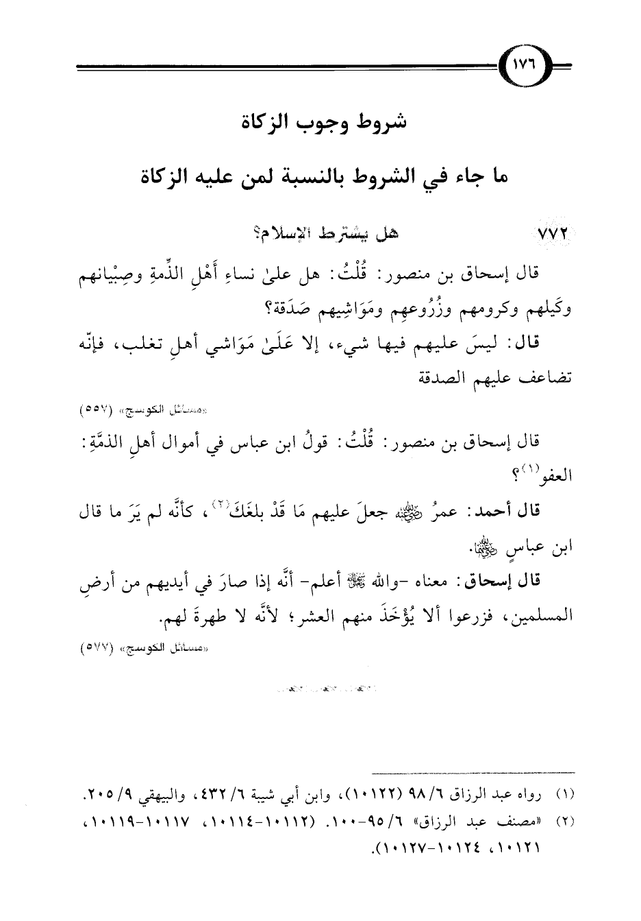 قال إسحاق بن منصور: قُلْتُ: هل على نساءِ أَهْلِ الذِّمةِ وصِبْيانهم وكَيلهم وكرومهم وزُرُوعهِم ومَوَاشِيهم صَدَقة؟