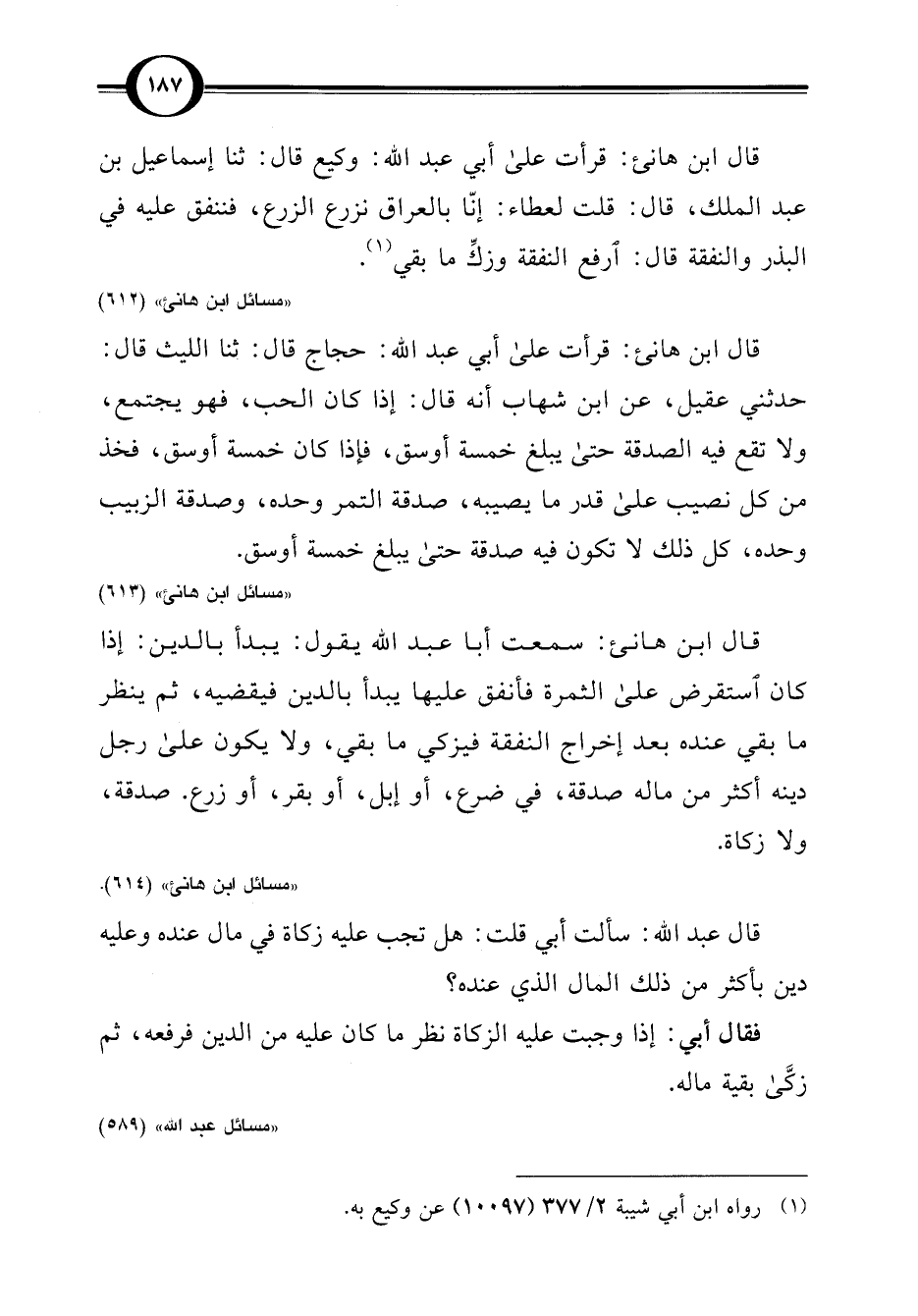 "مسائل ابن هانئ" (612)