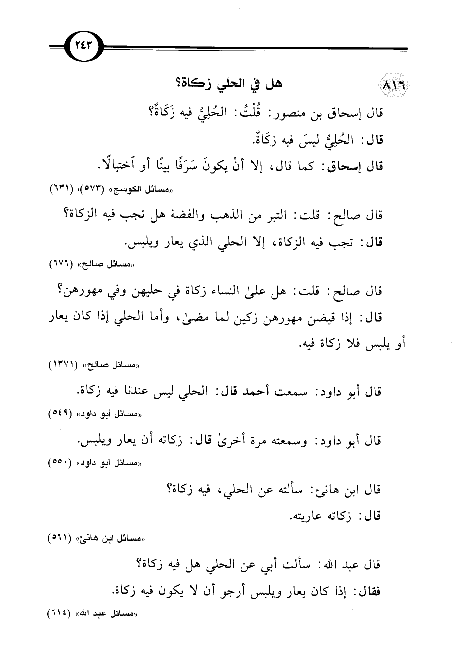 "مسائل الكوسج" (573)، (631)
