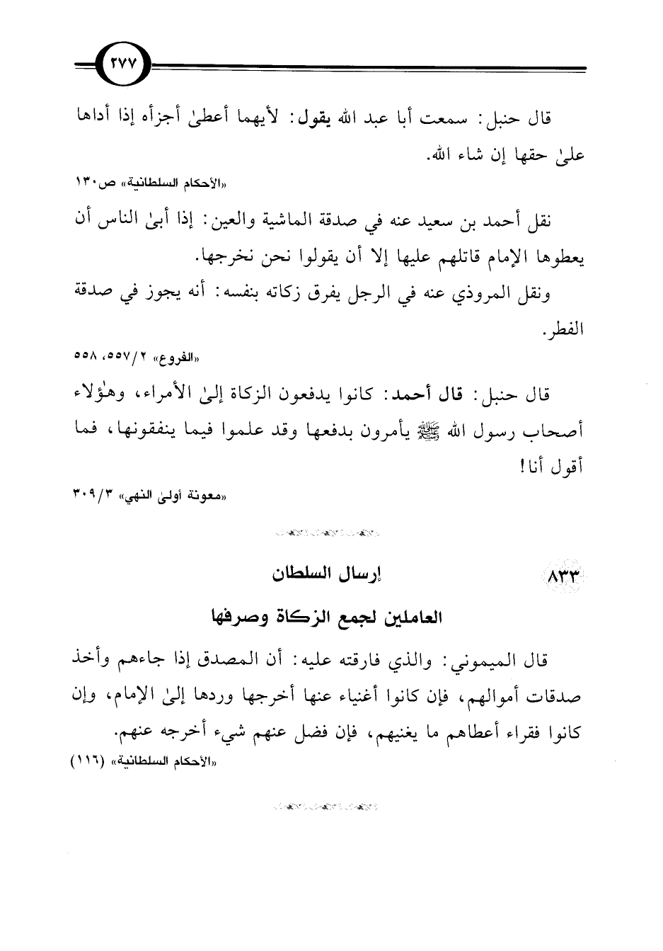 833 - إرسال السلطان العاملين لجمع الزكاة وصرفها