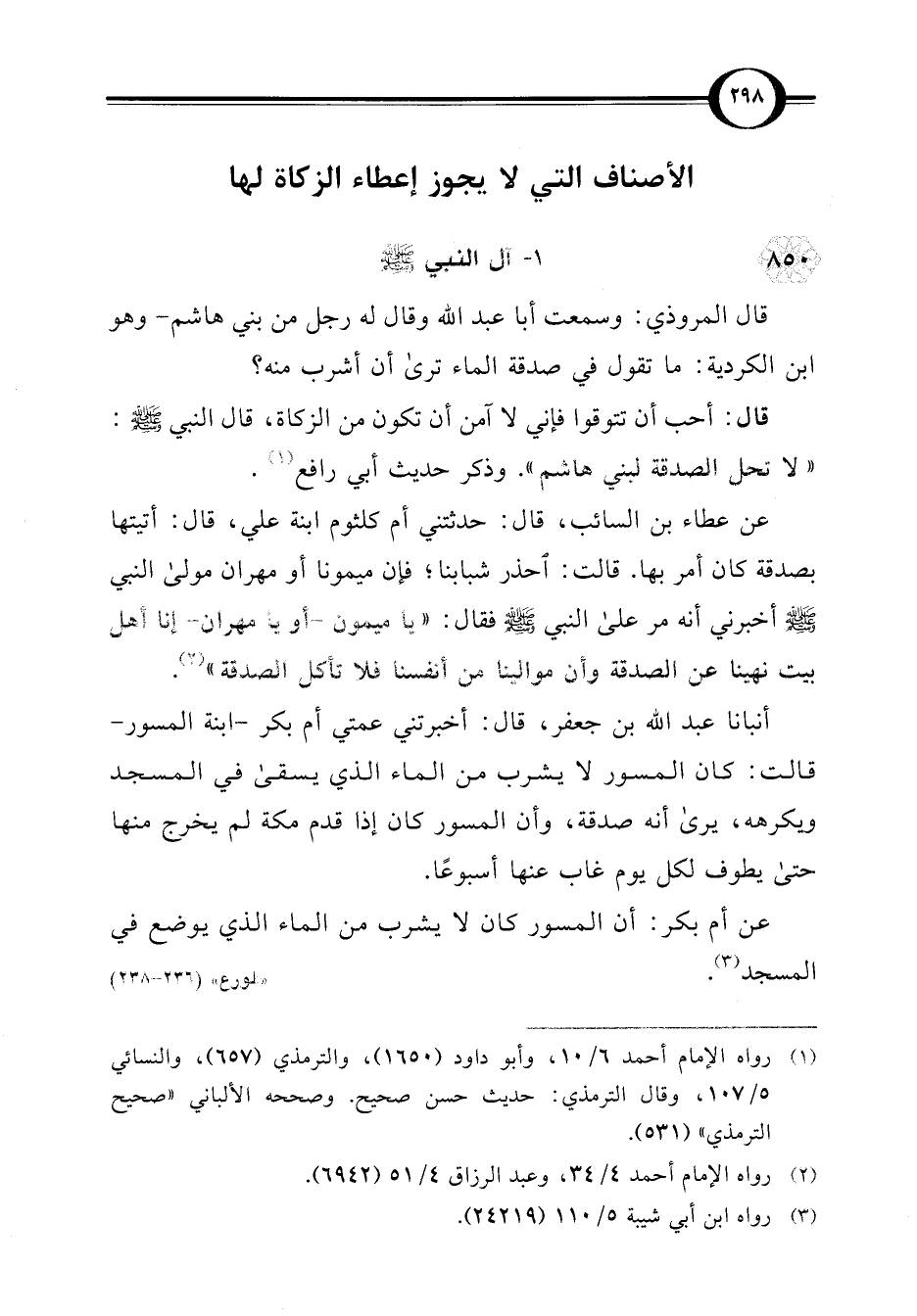 قال المروذي: وسمعت أبا عبد اللَّه وقال له رجل من بني هاشم -وهو ابن الكردية: ما تقول في صدقة الماء ترى أن أشرب منه؟