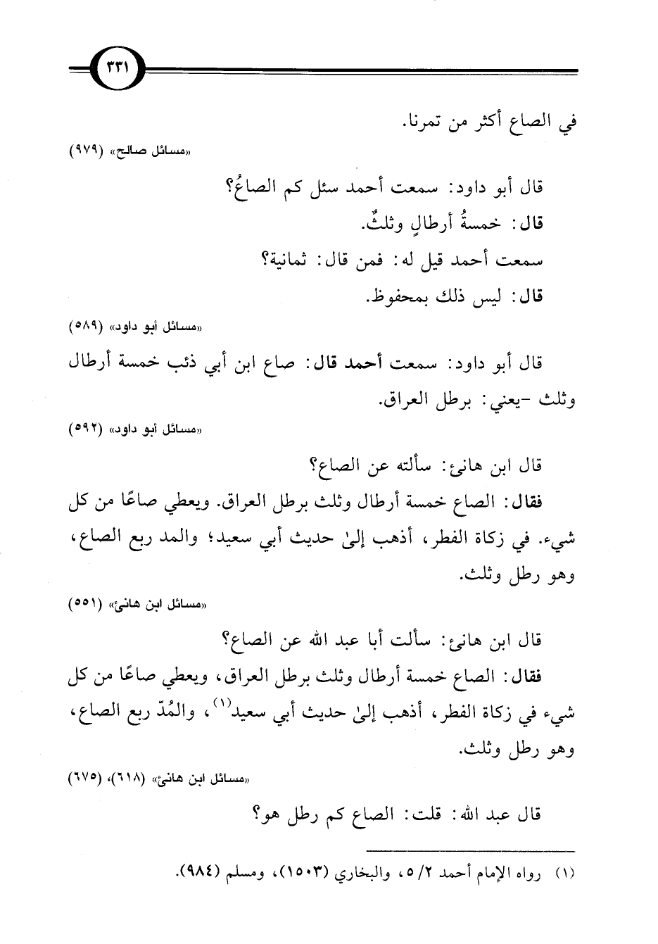 قال عبد اللَّه: قلت: الصاع كم رطل هو؟