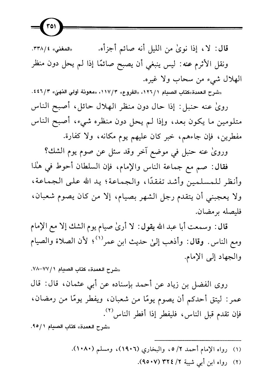 "شرح العمدة" كتاب الصيام 1/ 126، "الفروع" 3/ 117، "معونة أولي النهى" 3/ 446.