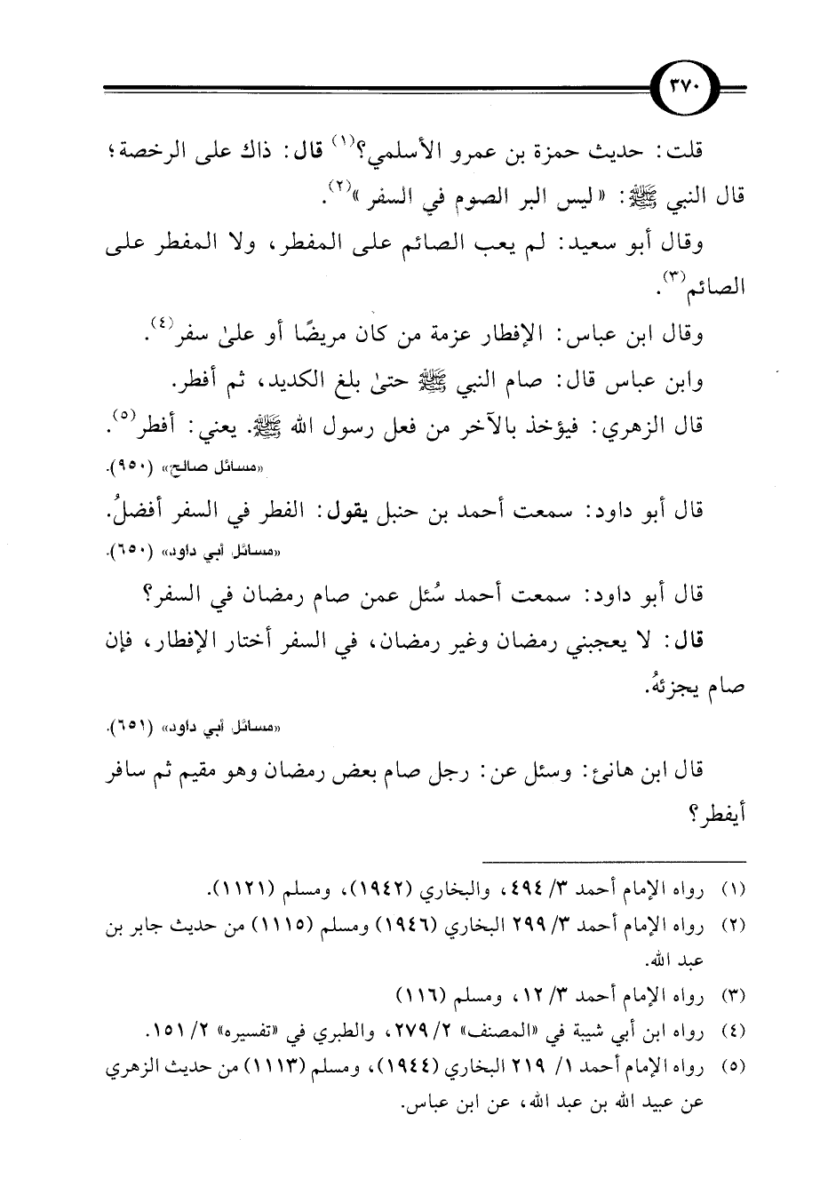 قال أبو داود: سمعت أحمد سُئل عمن صام رمضان في السفر؟