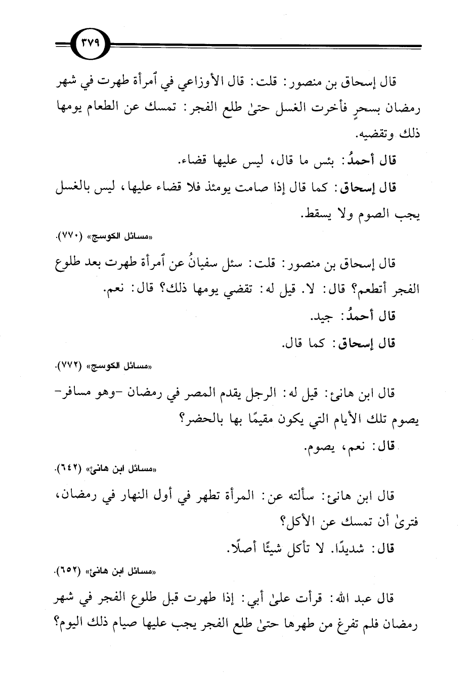 "مسائل الكوسج" (772).