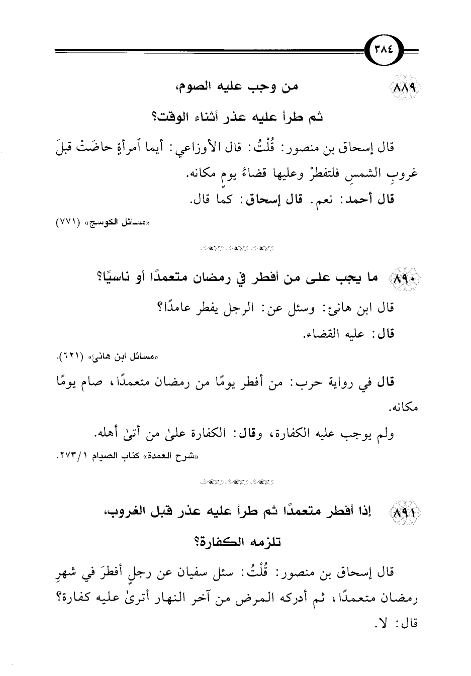 قال ابن هانئ: وسئل عن: الرجل يفطر عامدًا؟