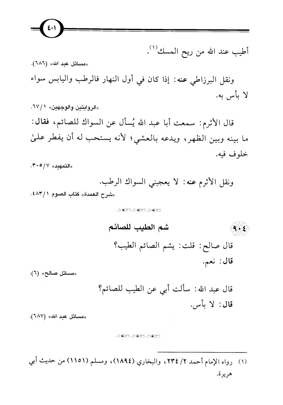 قال عبد اللَّه: سألت أبي عن الطيب للصائم؟