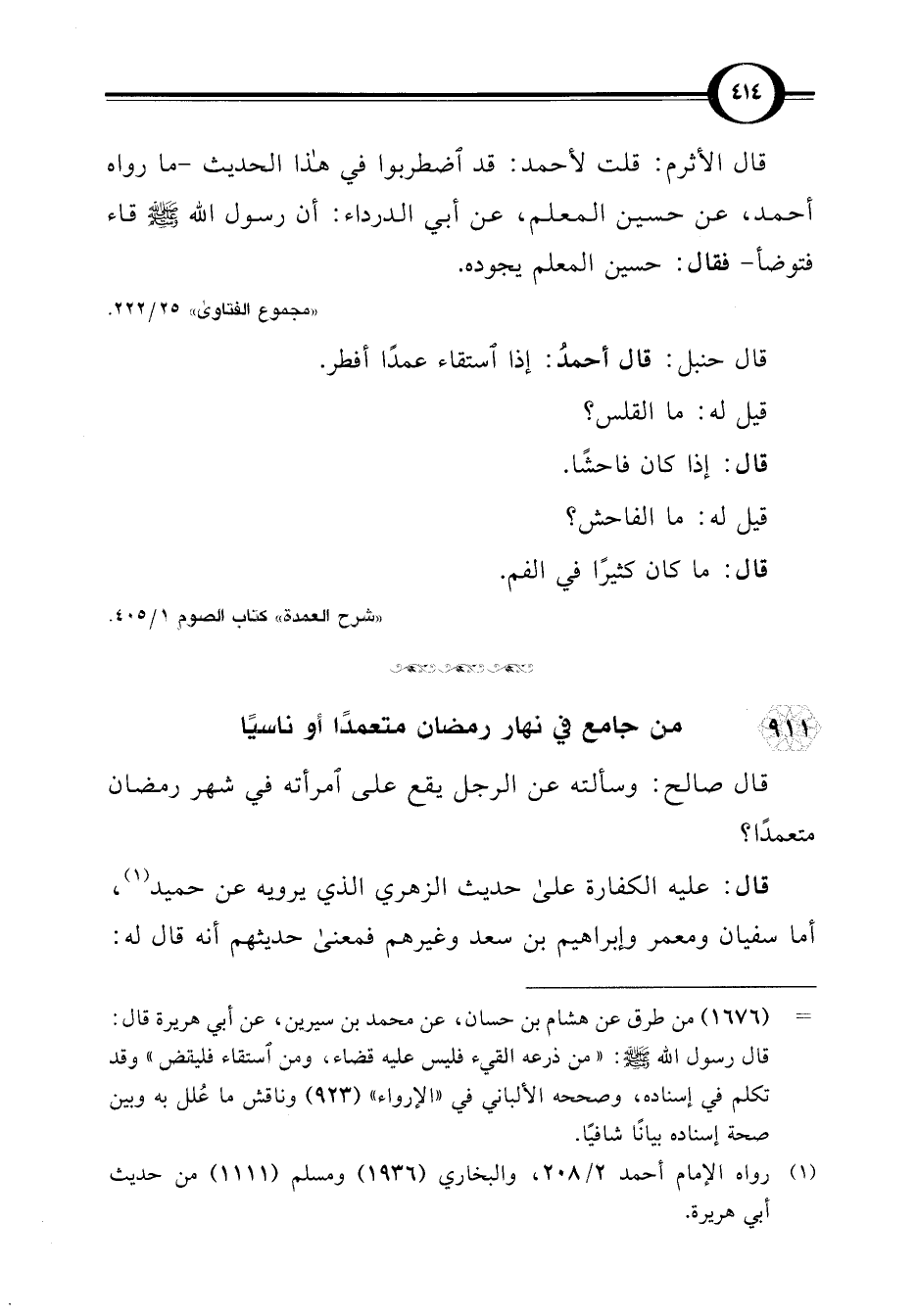 911 - من جامع في نهار رمضان متعمدًا أو ناسيًا