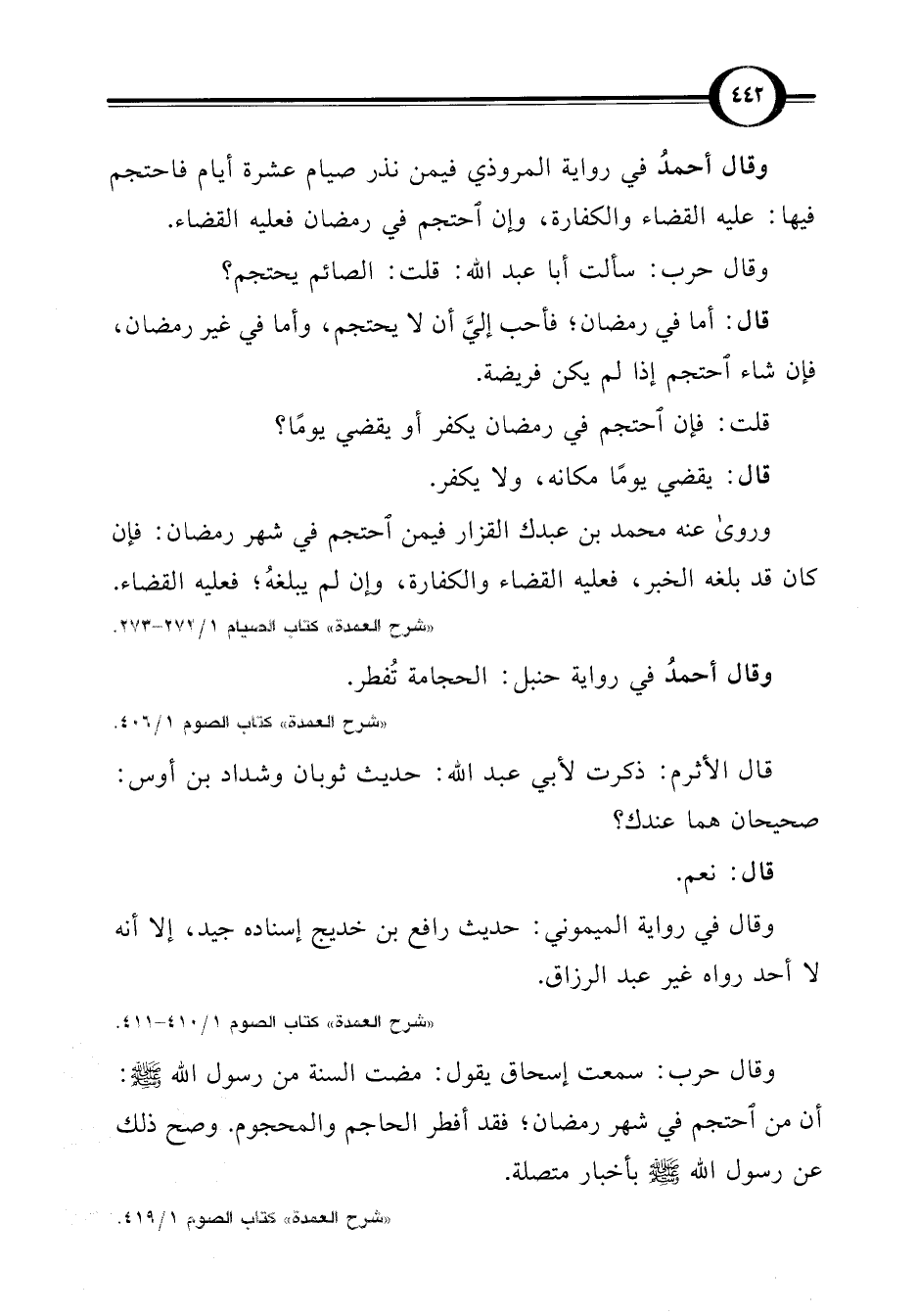 "شرح العمدة" كتاب الصوم 1/ 410 - 411.