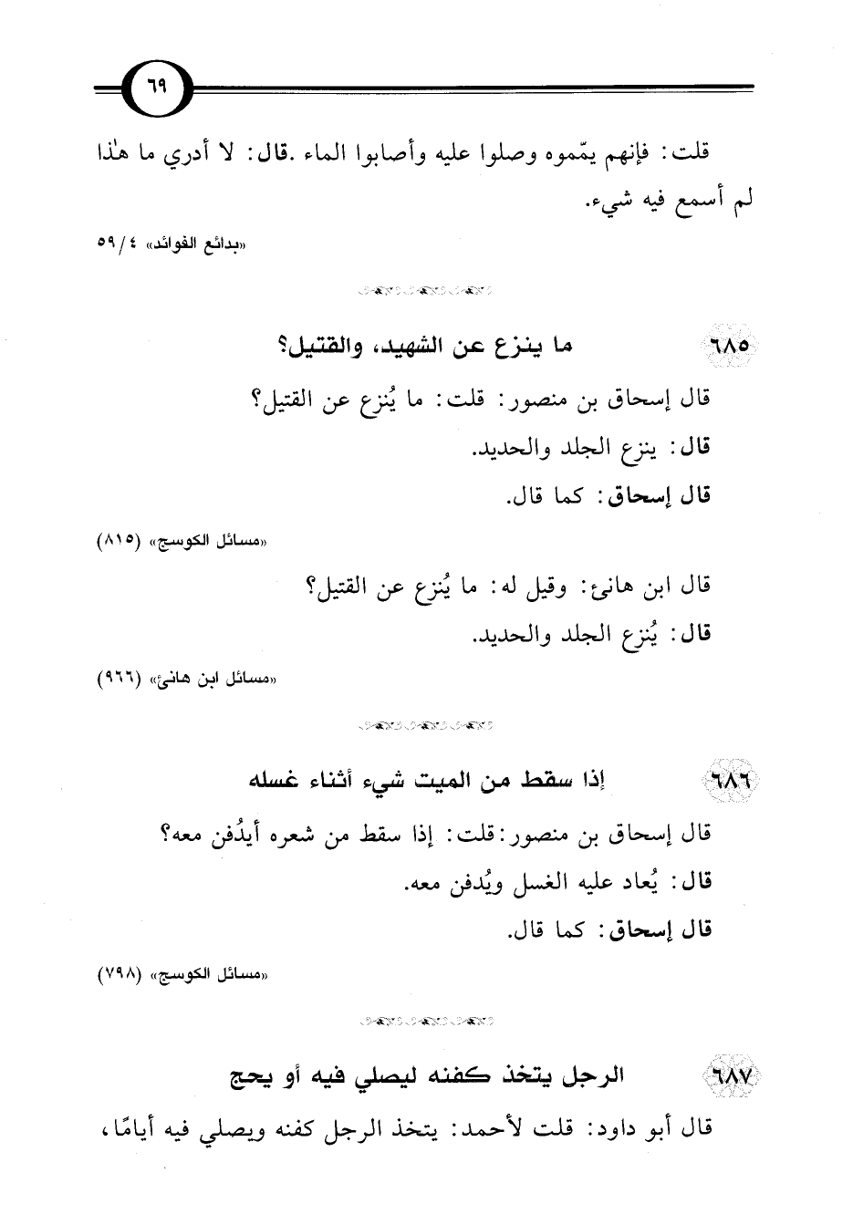قال إسحاق بن منصور: قلت: ما يُنزع عن القتيل؟