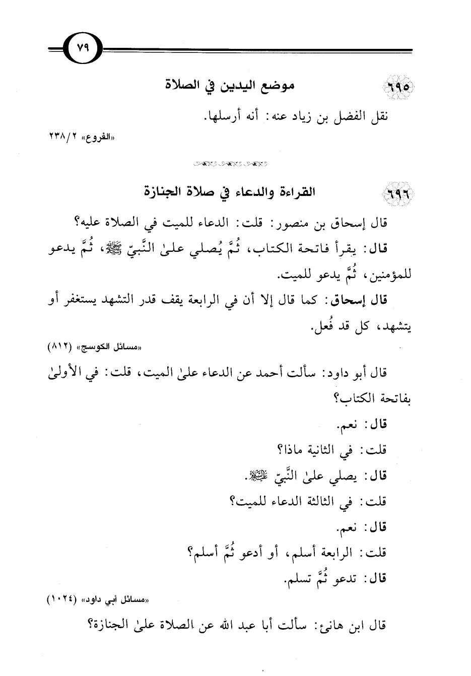 قال إسحاق بن منصور: قلت: الدعاء للميت في الصلاة عليه؟