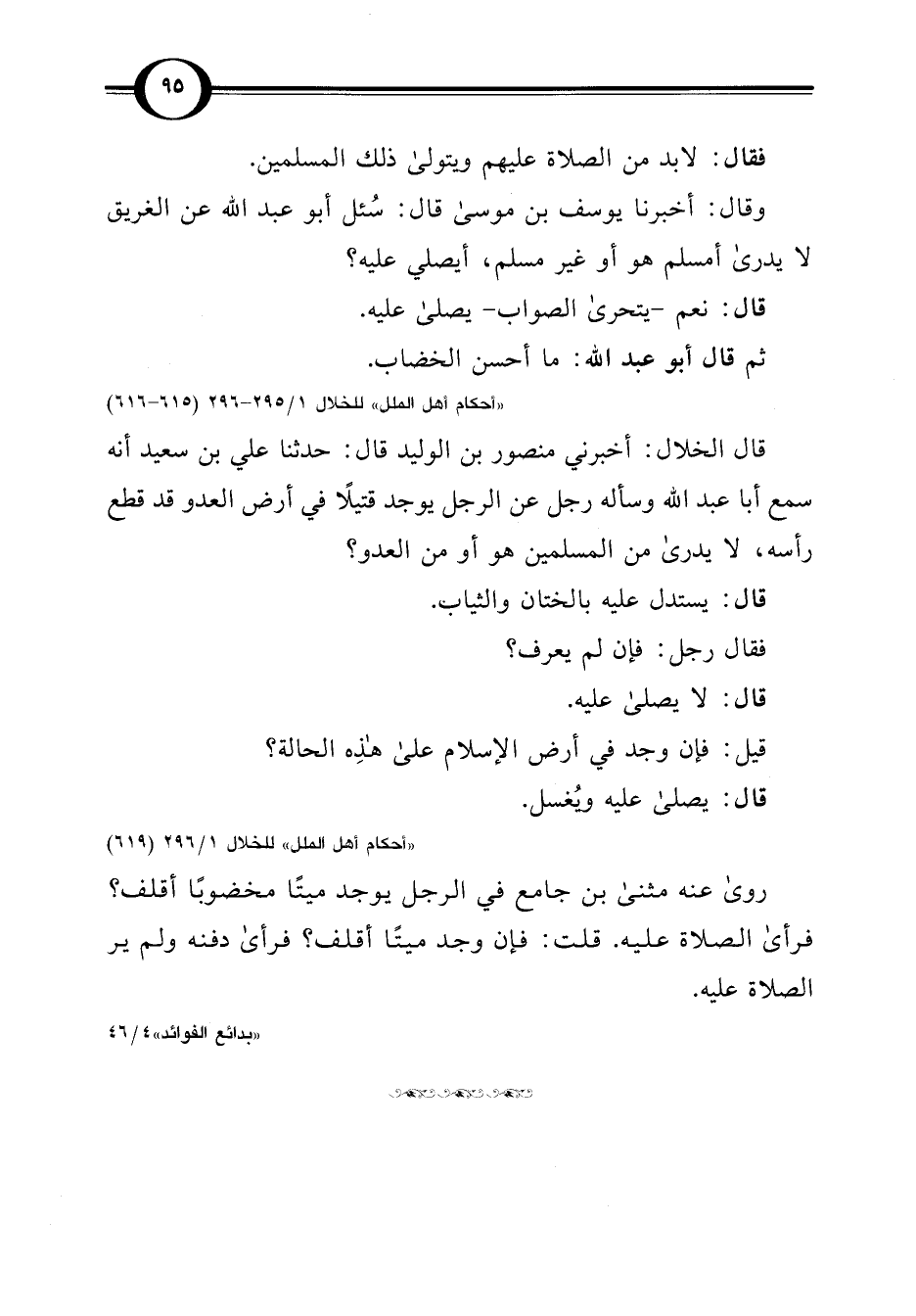 "أحكام أهل الملل" للخلال 1/ 295 - 296 (615 - 616)